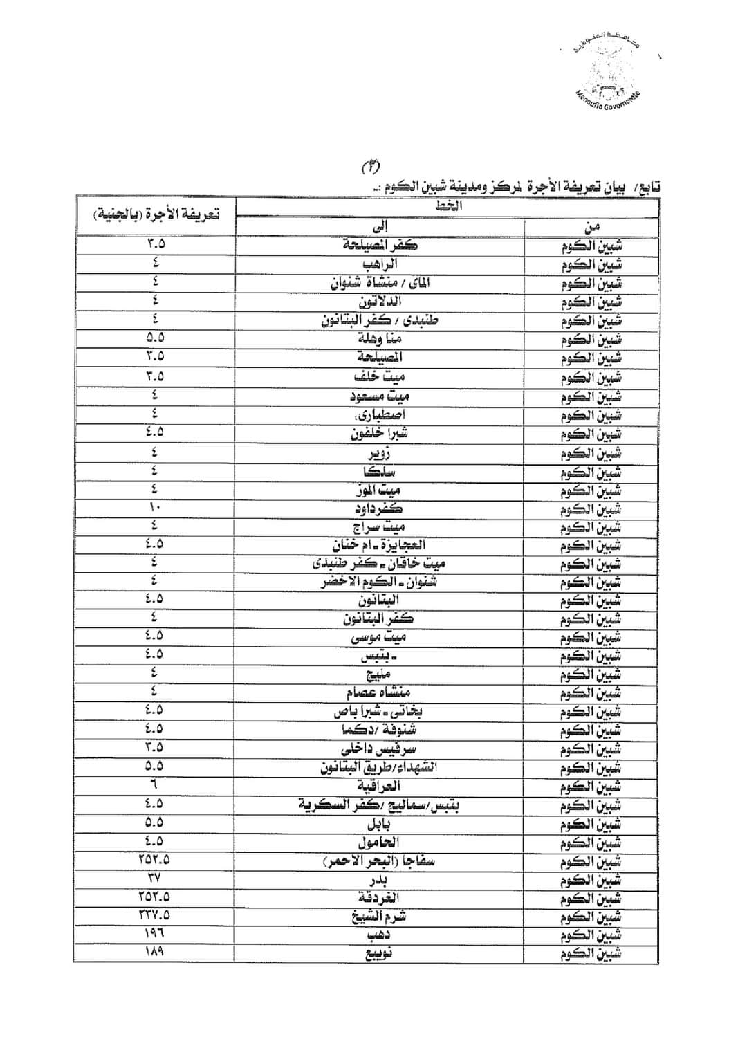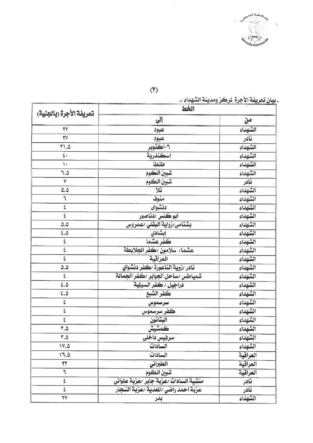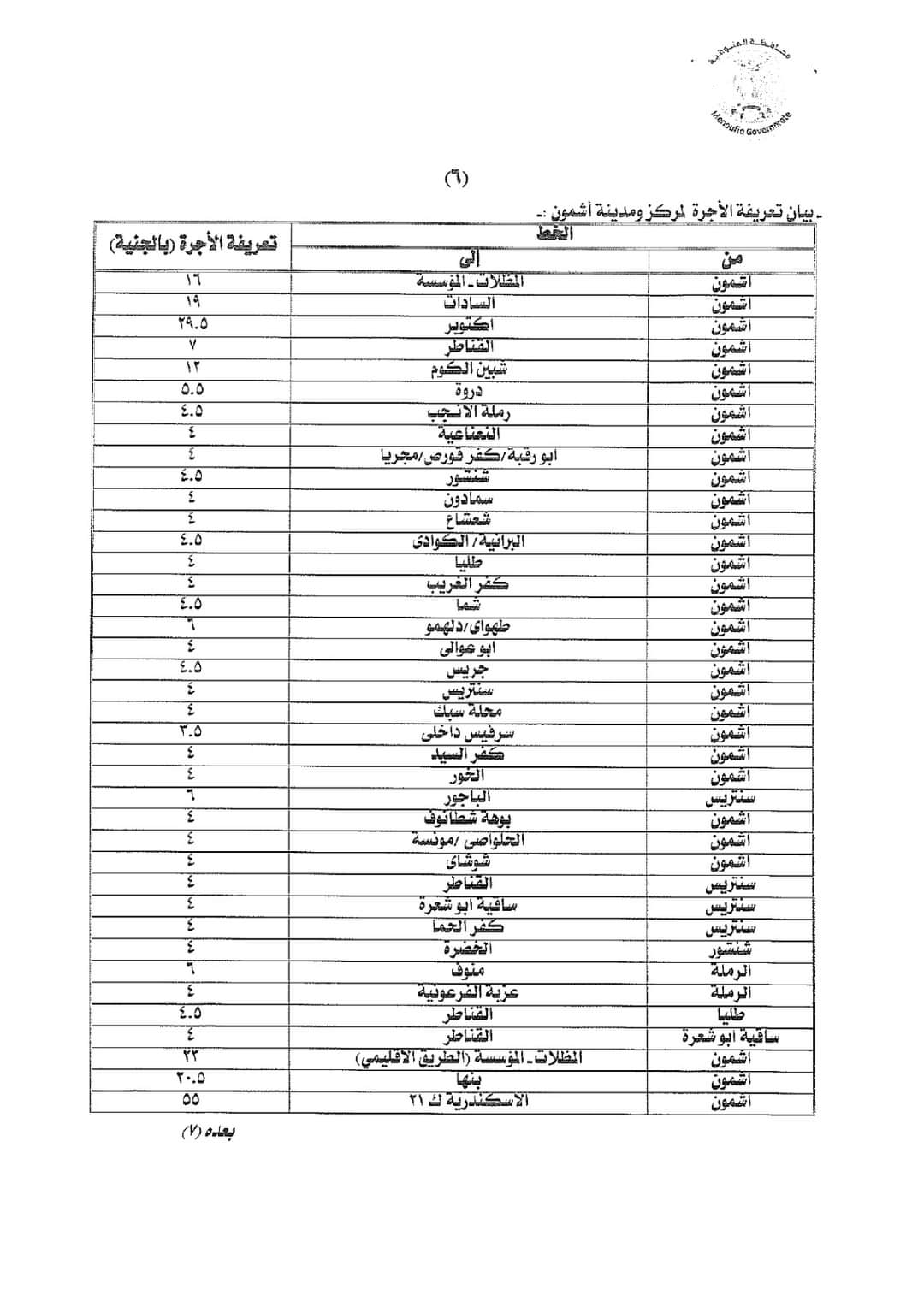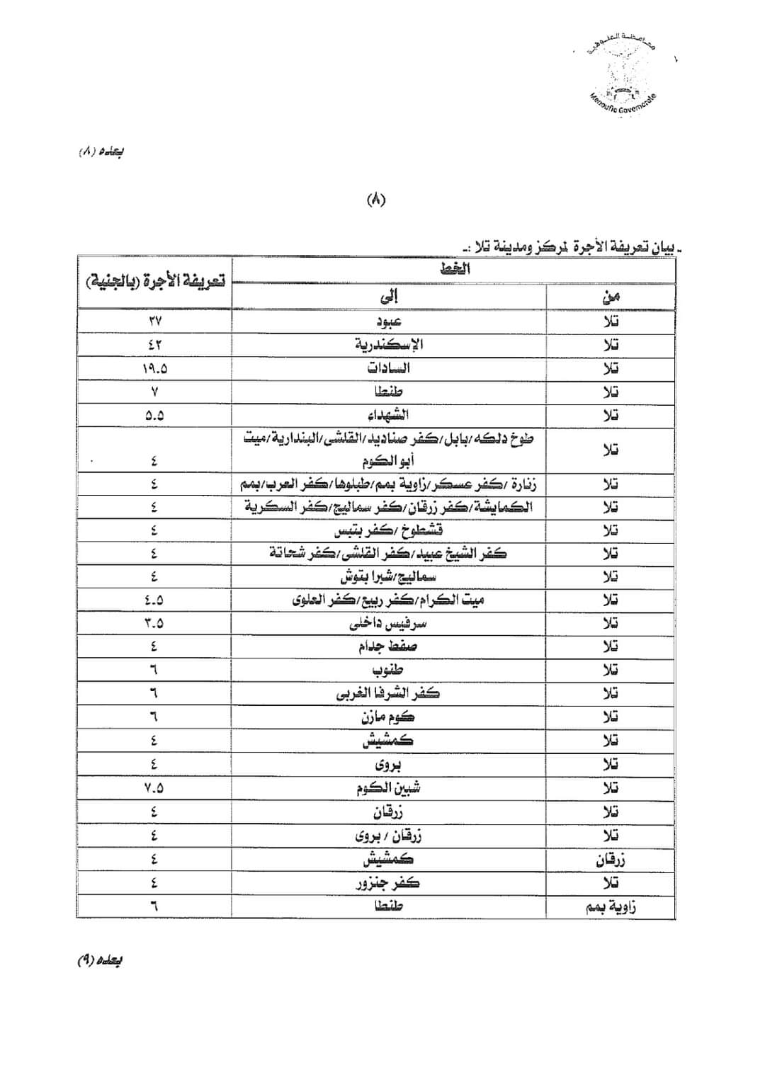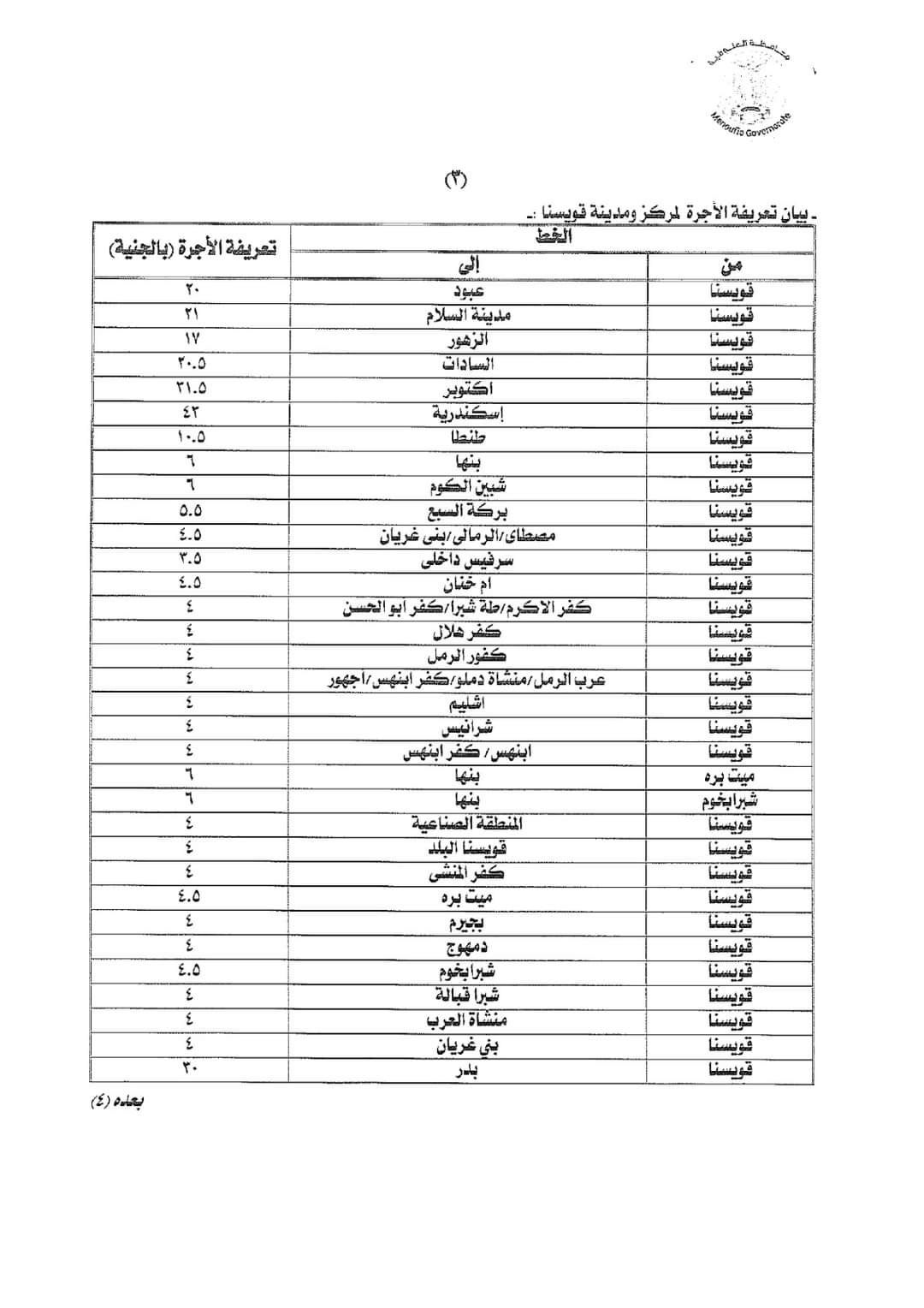 محافظ المنوفية يعلن التعريفة الجديدة لوسائل المواصلات (صور)