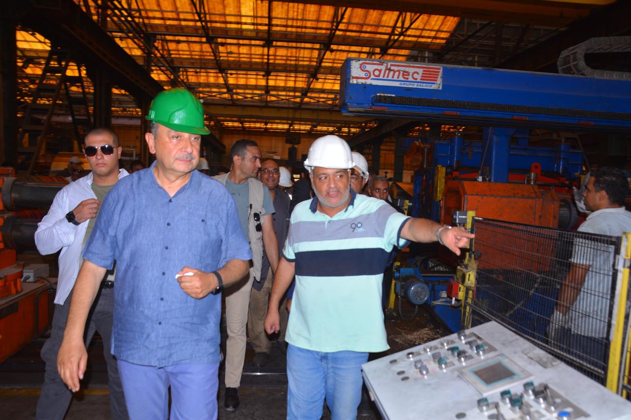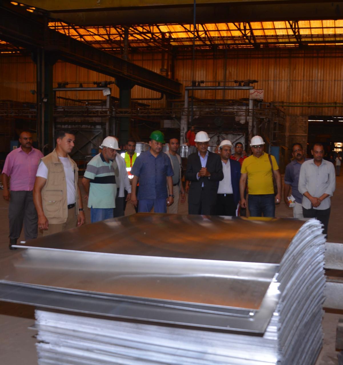 تفقد المهندس محمد شيمي القطاعات الإنتاجية بالشركة والمصانع، والتي تشمل قطاع إنتاج ودرفلة الألومنيوم، وقطاع إنتاج ودرفلة النحاس، وقطاع إنتاج الصلب والمخازن.
