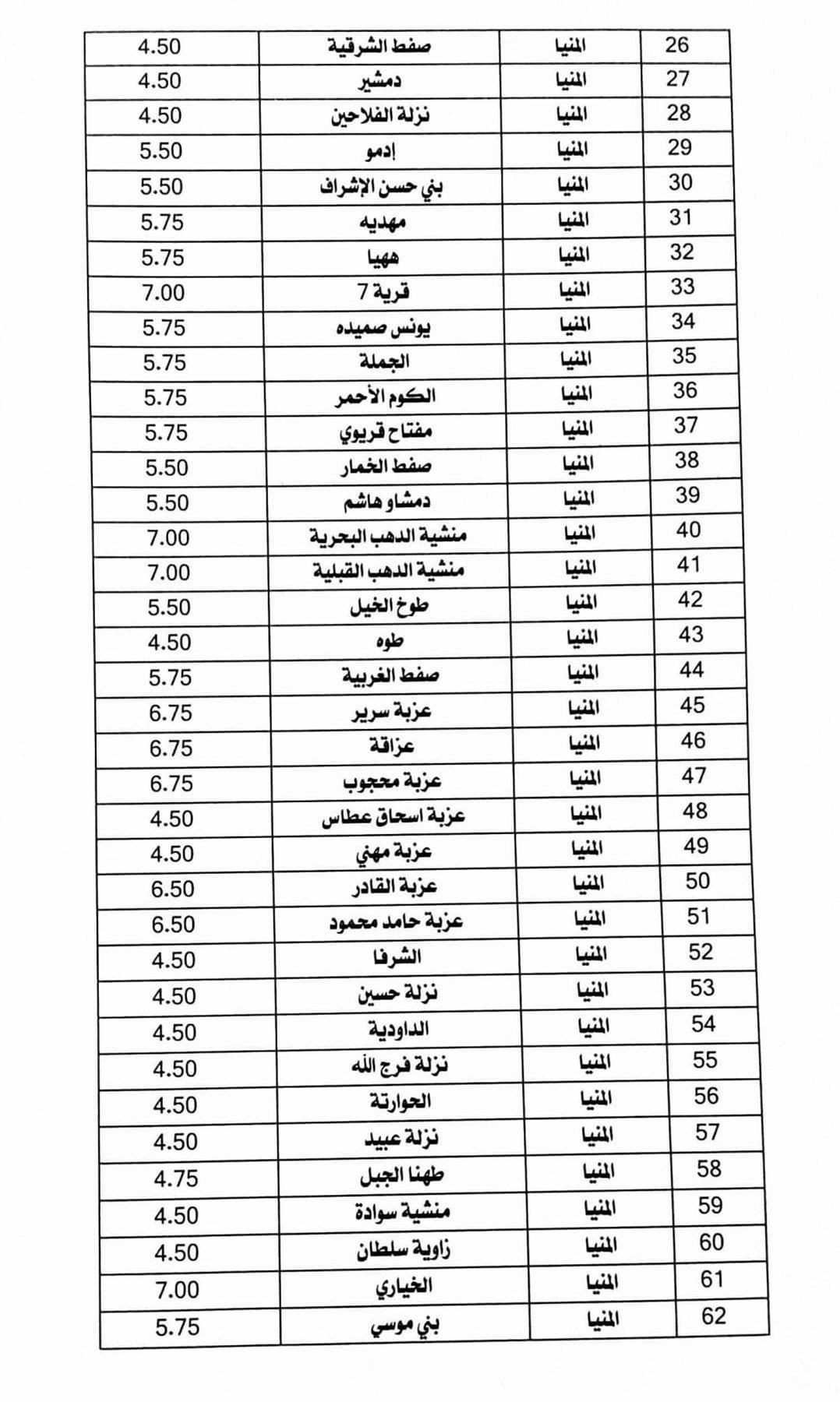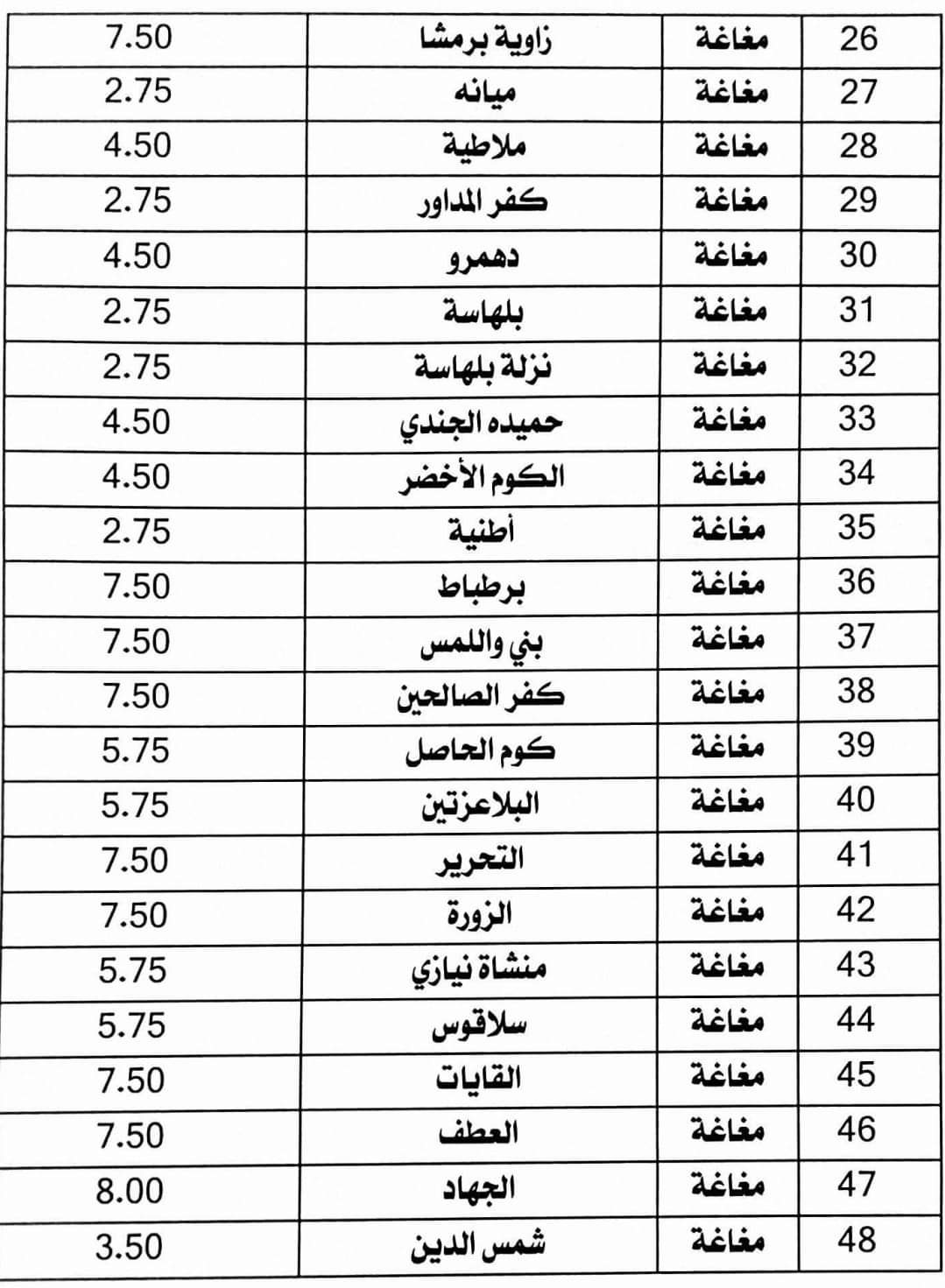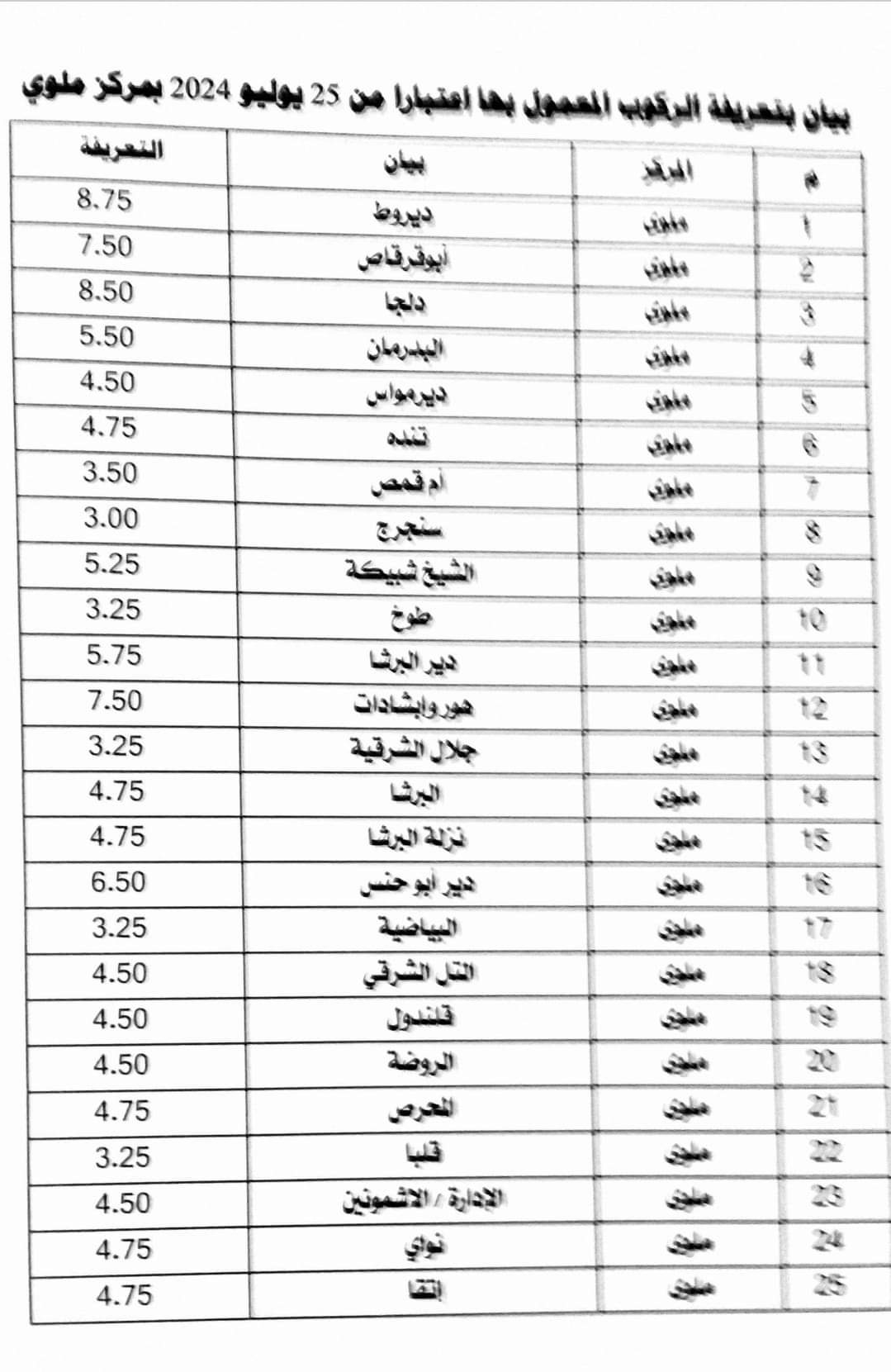 تعريفة الركوب الجديدة في محافظة المنيا