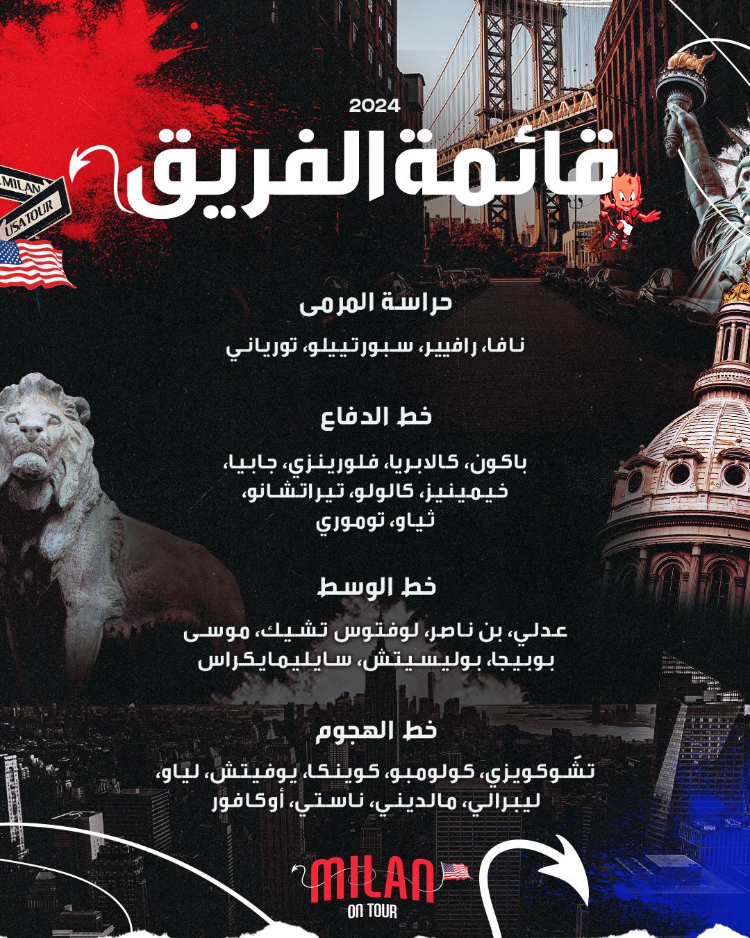 غيابات ميلان عن جولة الولايات المتحدة الأمريكية