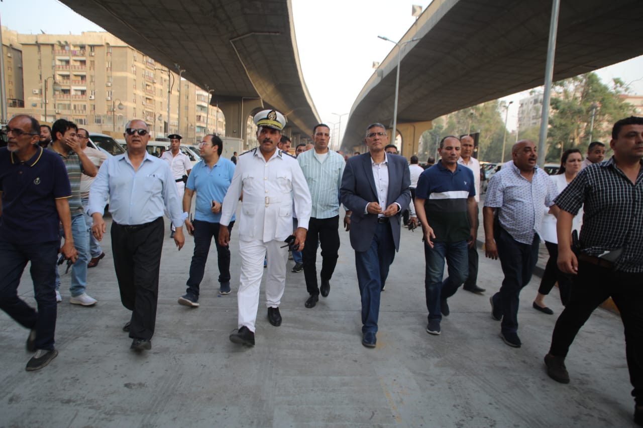 رافق المحافظ خلال الجولة هند عبد الحليم نائب المحافظ واللواء شاكر يونس السكرتير العام والسيد محمد نور السكرتير العام المساعد وأيمن عتريس رئيس جهاز التفتيش والمتابعة الميدانية ومحمود حسين رئيس جهاز السرفيس والنقل الجماعى وطه عبدالصادق رئيس حى الهرم وأشرف تامر رئيس حى الطالبية وزكى سلام رئيس حى جنوب الجيزة.