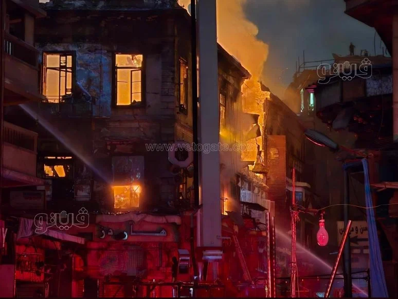 وأظهر مقطع الفيديو استعار النيران والتهامها عمارتين بالكامل وتطاير ألسنة اللهب إلى عنان السماء، وسط حالة من الرعب للباعة وأصحاب المحال بالعتبة