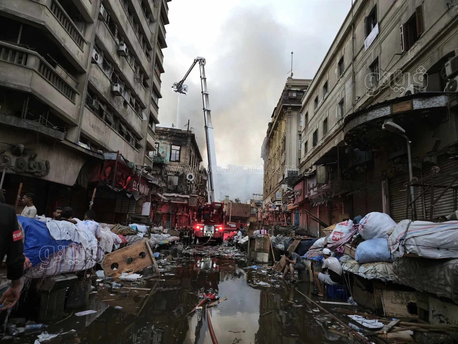 وصل اللواء جمال ياسين مدير إدارة الحماية المدنية بمديرية أمن القاهرة لموقع حريق مخزن ملابس أمام جراج العتبة لمتابعة محاولات قوات الدفاع المدني من السيطرة على الحريق بكافة المعدات الثقيلة من طلمبات حريق وسلالم ومعدات الرافعة الهيدروليكية.