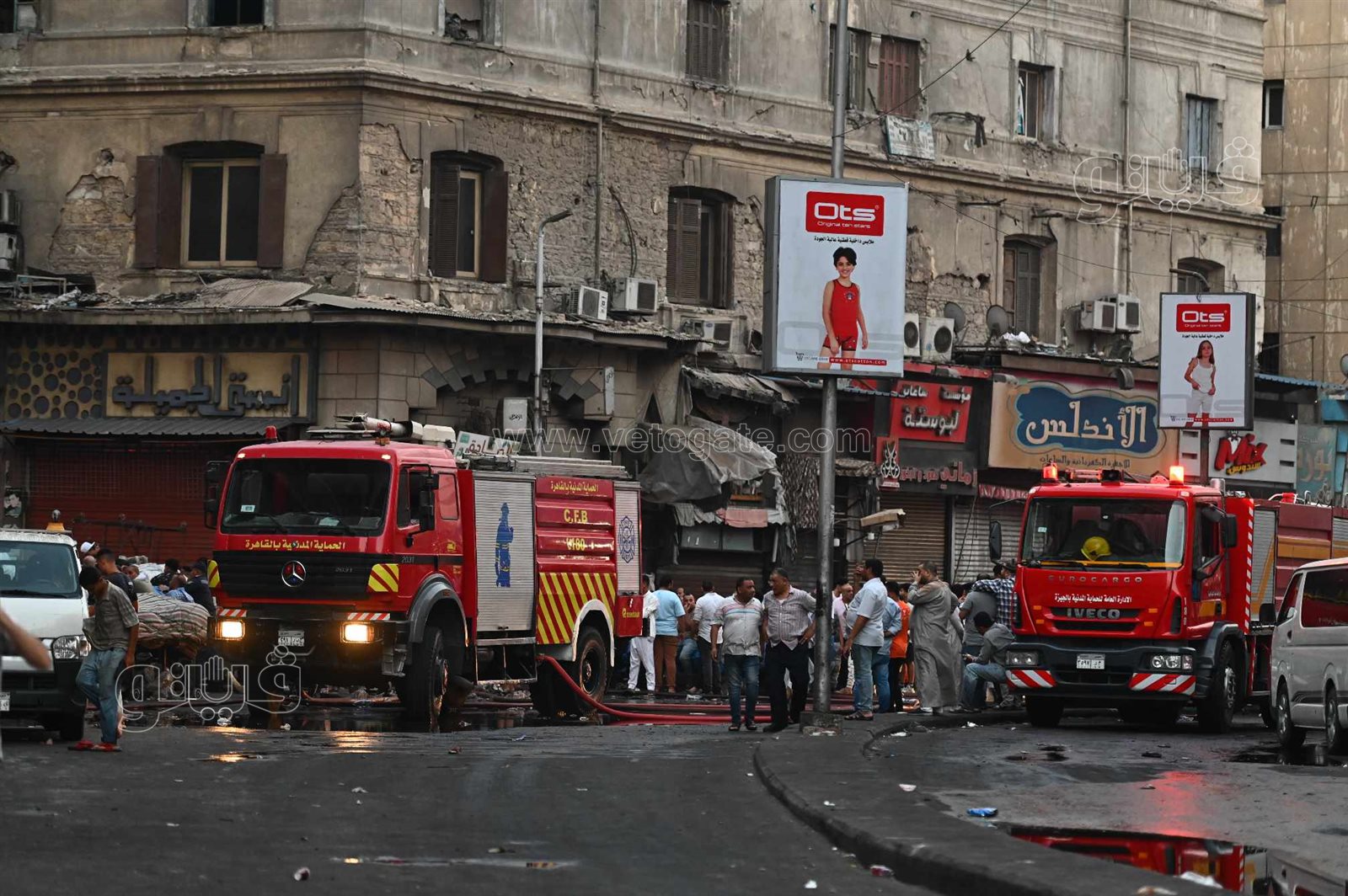 كما رصدت فيتو تجمهر الباعة وأصحاب المحال بعد أن دمرت النيران محتويات مخازن الملابس والأجهزة الإلكترونية والكهربائية المتواجدة بالعمارتين، وسط حسرة الجميع التي ظهرت على وجوههم من هول الصدمة.
