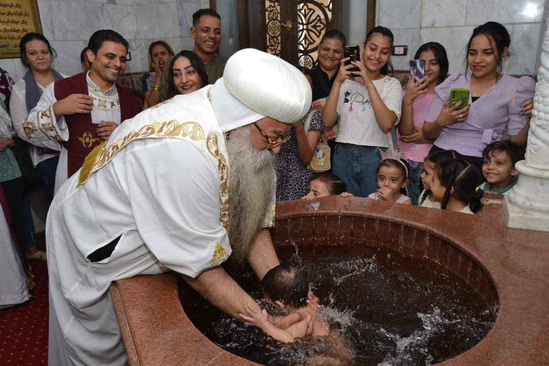 كما قام بمعمودية طفلتين وتدشين بعض اواني المذبح والأيقونات،وشارك الصلاة بعض الآباء الأجلاء كهنة الكنيسة، وألقى عظة القداس الإلهي عن "الصبر".