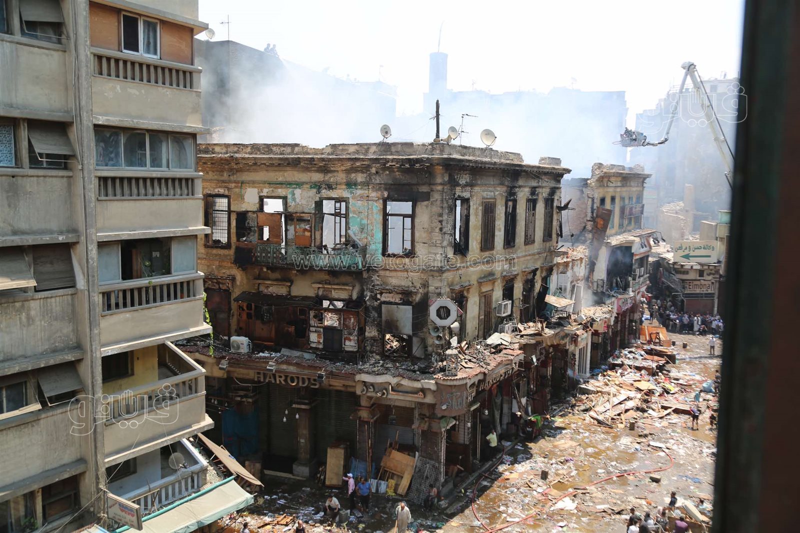 وأضاف عرفات في تصريحاته الخاصة لـ"فيتو"، أن العمارة التي تحتوي على المخازن المحترقة تتكون من ثلاثة طوابق، وقد انهار من الحريق السقفان الأول والثاني، بينما لا يزال السقف الأخير قائمًا.