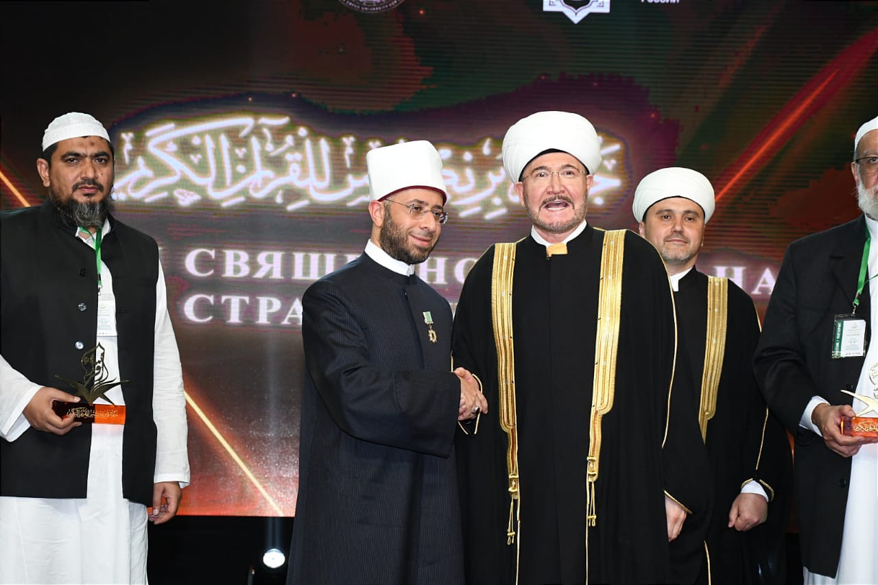 أهدى المفتي الشيخ راوي عين الدين رئيس الإدارة الدينية لمسلمي روسيا الاتحادية ومجلس شورى المفتين لروسيا وسام الفخر للدكتور أسامة الأزهري وزير الأوقاف تقديرًا لجهوده المباركة ومساهمته الكبيرة في تعزيز العلاقات الثنائية الروسية المصرية، وتوطيد أواصر التعاون المثمر، والارتقاء بها إلى آفاق أرحب وأشمل بما يخدم مصالح بلدينا المشتركة ويعود بالخير والنفع عليهما.