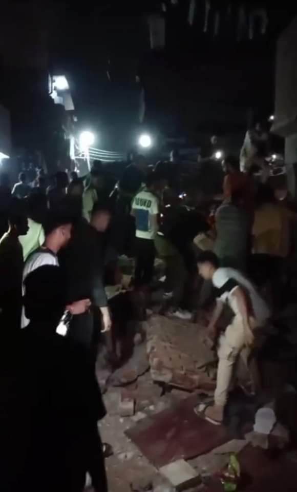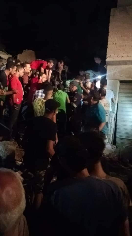 وانتقلت الجهات المعنية لمكان البلاغ، وجارٍ البحث عن ضحايا أسفل الأنقاض.