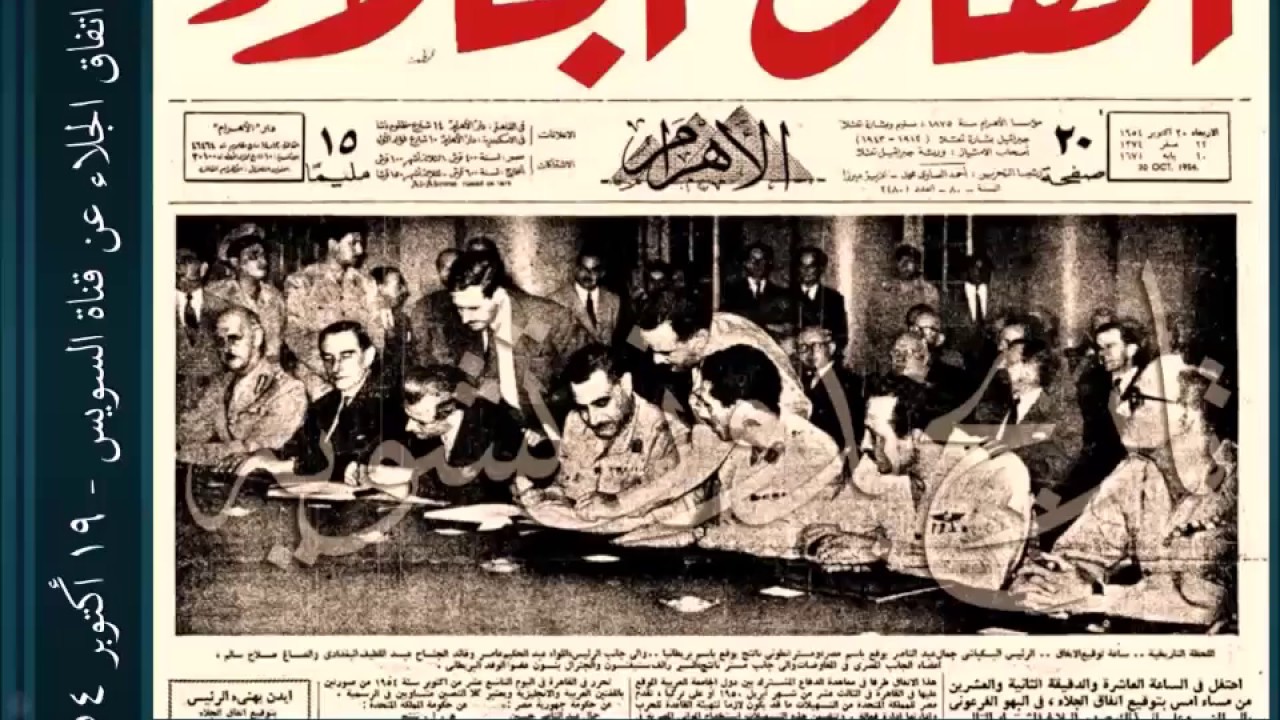 يشار إلى أنه تم توقيع الاتفاقية بشكل نهائي في 19 أكتوبر 1954 بين جمال عبد الناصر كرئيس لوزراء مصر، وأنتوني إيدن، وزير الدولة للشئون الخارجية البريطاني، آنذاك.