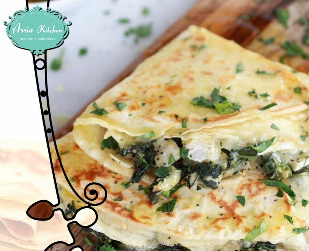 طريقة عمل الكريب بالفراخ والسبانخ بالبشاميل