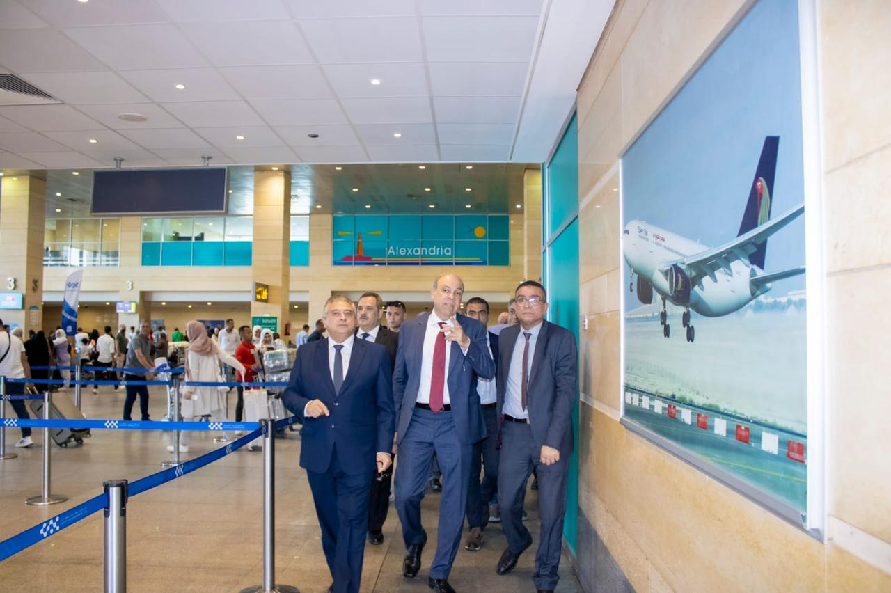 وزير الطيران يتفقد مطار برج العرب الدولي ويتابع أعمال تطوير مبني الركاب الجديد
