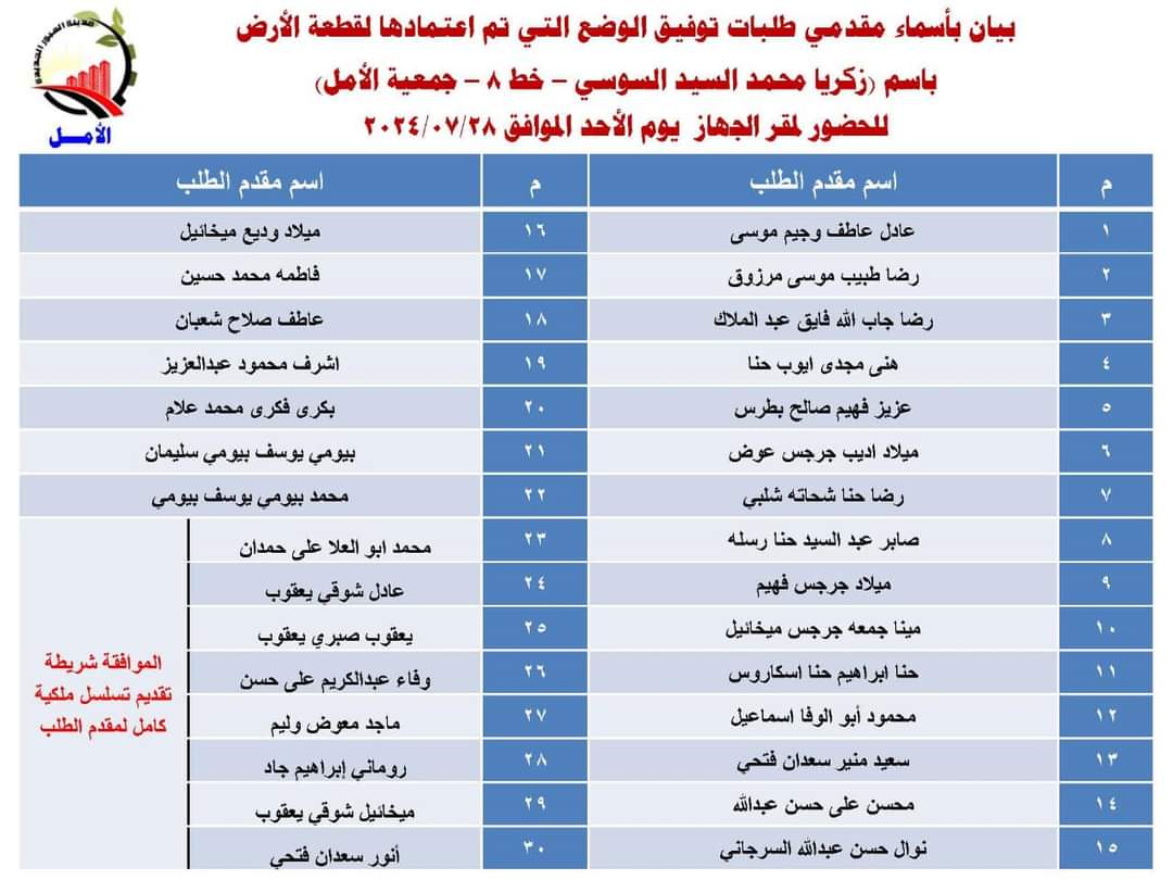 وناشد الجهاز المواطنين مراجعة الجهاز لاستكمال الإجراءات والسداد، علمًا بأنه سيتم التعامل مع صاحب الشأن بصفته، حيث سيتم التوقيع على الإقرارات اللازمة، وذلك بدايةً من الأحد 28 يوليو الجاري.