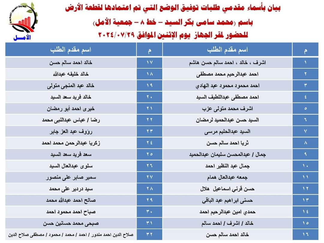 كشف جهاز مدينة العبور الجديدة عن استقبال دفعة جديدة من المواطنين، الذين تم اعتماد توفيق الأوضاع لأراضيهم بمنطقة الأمل التابعة للمدينة، لاستكمال إجراءات التقنين.