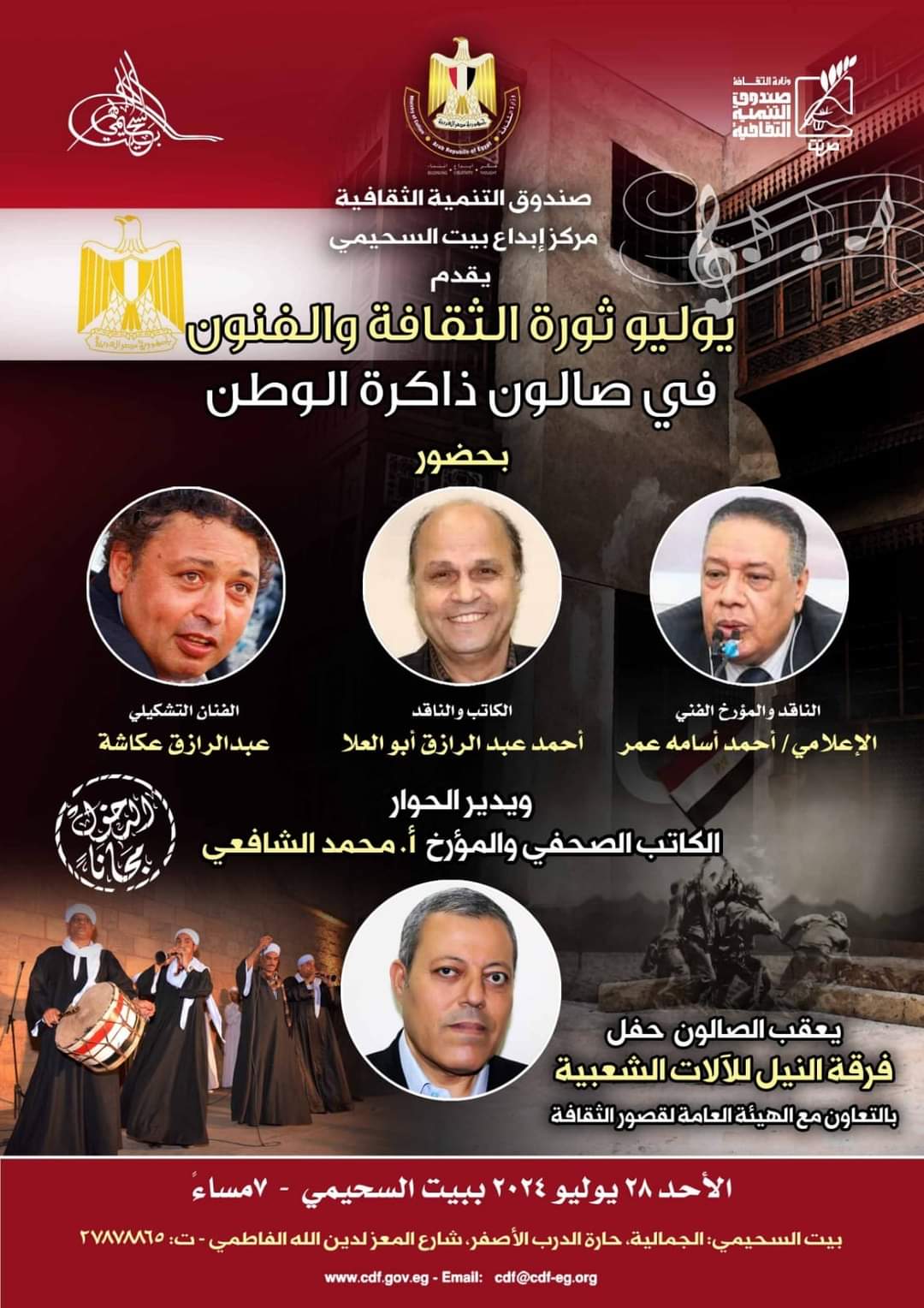صالون ذاكرة الوطن ببيت السحيمي يحتفل بذكرى 23 يوليو اليوم