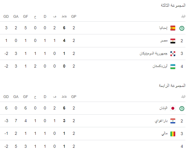 وحسم منتخبات فرنسا وإسبانيا واليابان التأهل لربع النهائي بينما ودع منتخب أوزبكستان المنافسات وذلك الجولة الأخيرة لدور المجموعات المقرر لها الثلاثاء المقبل.