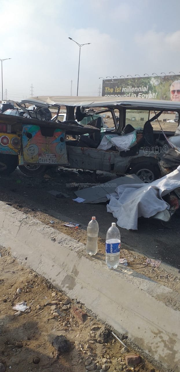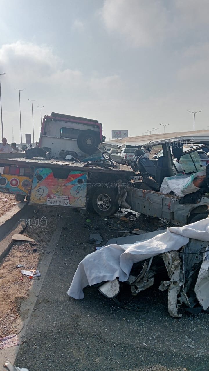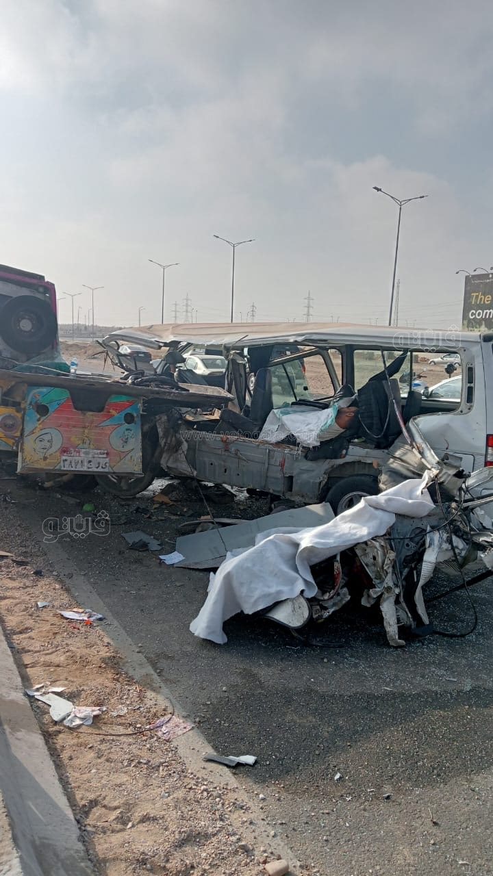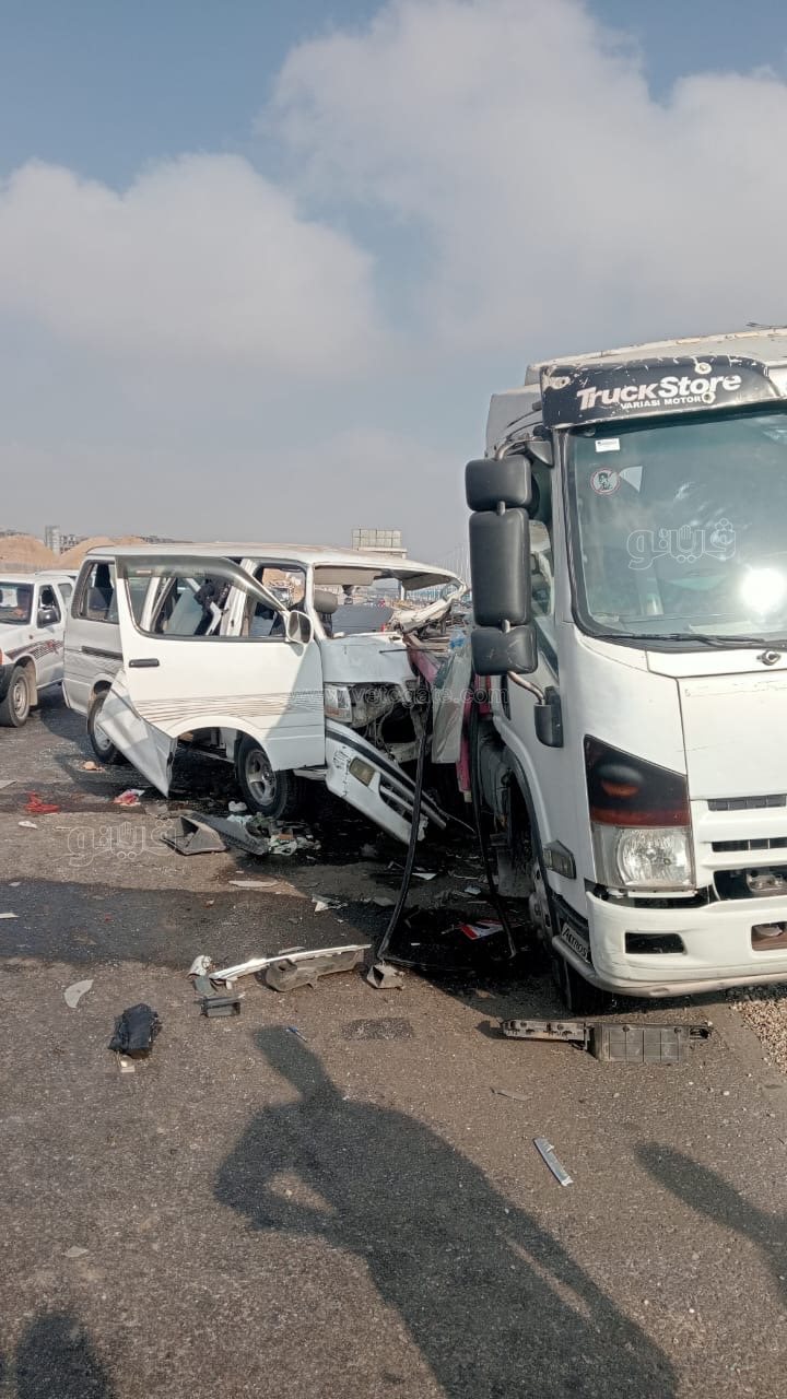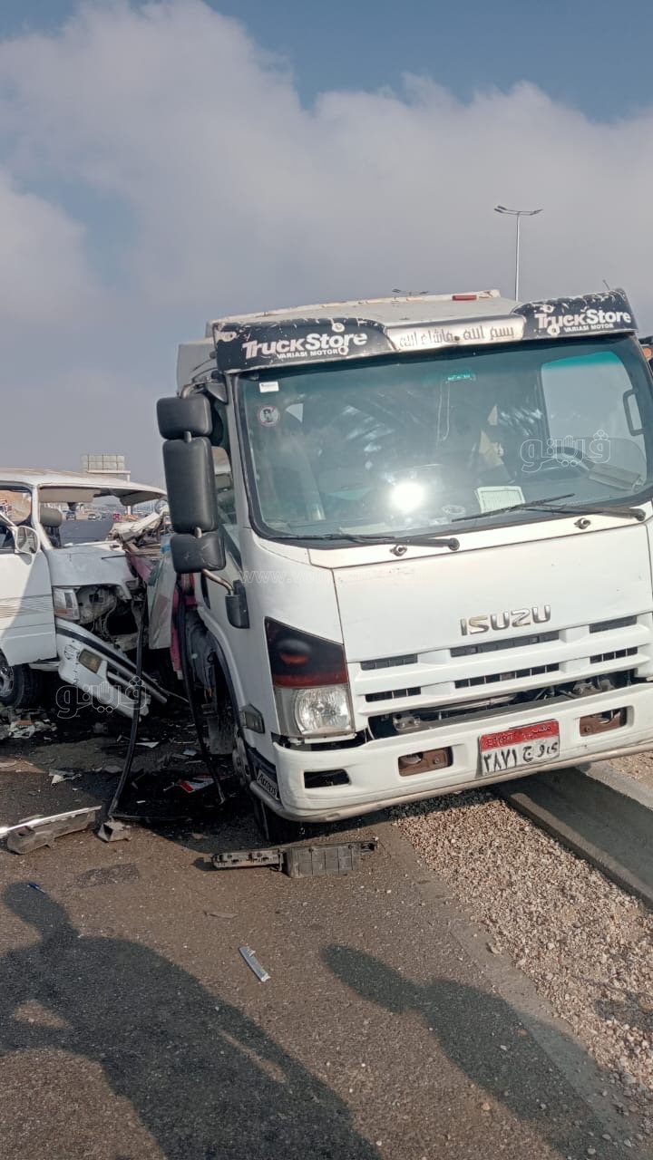 مصرع وإصابة 9 أشخاص في تصادم ميكروباص بسيارة نقل بطريق السويس (صور)