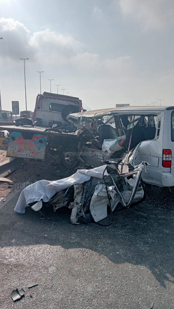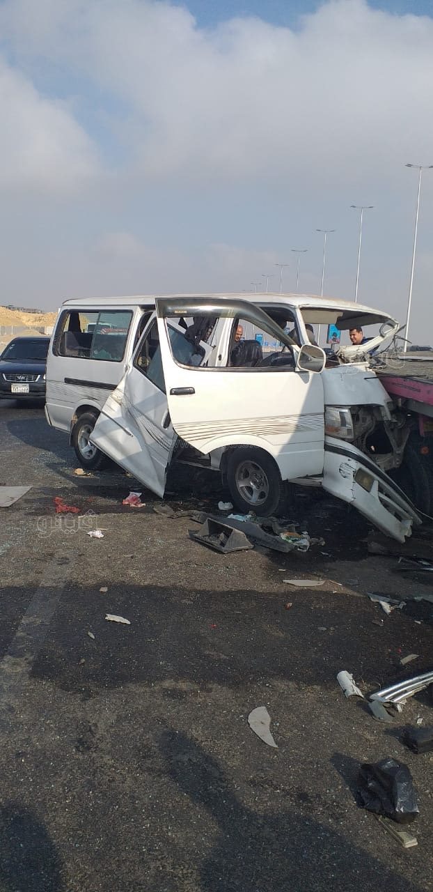 لقي ٣ أشخاص مصرعهم بينما أصيب ٦ آخرون في تصادم سيارة ميكروباص بسيارة نقل ثقيل بطريق السويس إتجاه السويس.