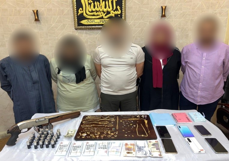 كما تم ضبط 3 أشخاص وسيدتين ؛ لسرقة مصوغات ذهبية من داخل محل يعمل به أحدهم بدائرة قسم شرطة قصر النيل، وبحوزتهم ( بندقية خرطوش وعدد من الطلقات – كمية من المصوغات الذهبية).