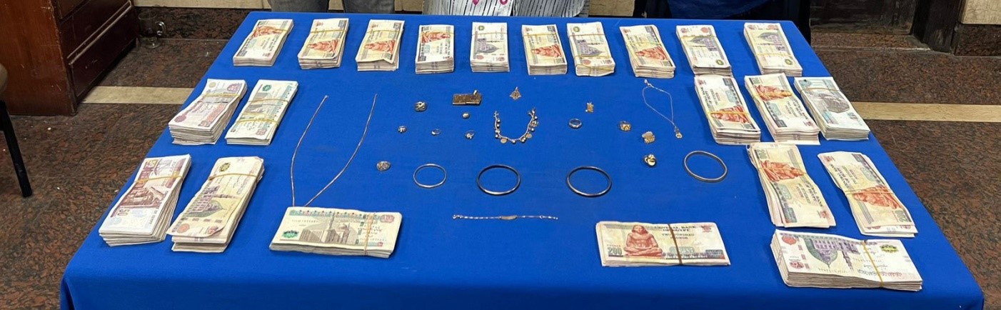 وتم ضبط (إحدى السيدات "تحمل جنسية إحدى الدول") حال قيامها ببيع مشغولات ذهبية بدائرة قسم شرطة الجمالية بثمن بخس لا يتناسب وقيمتها الحقيقية وبحوزتها مبلغ مالى.