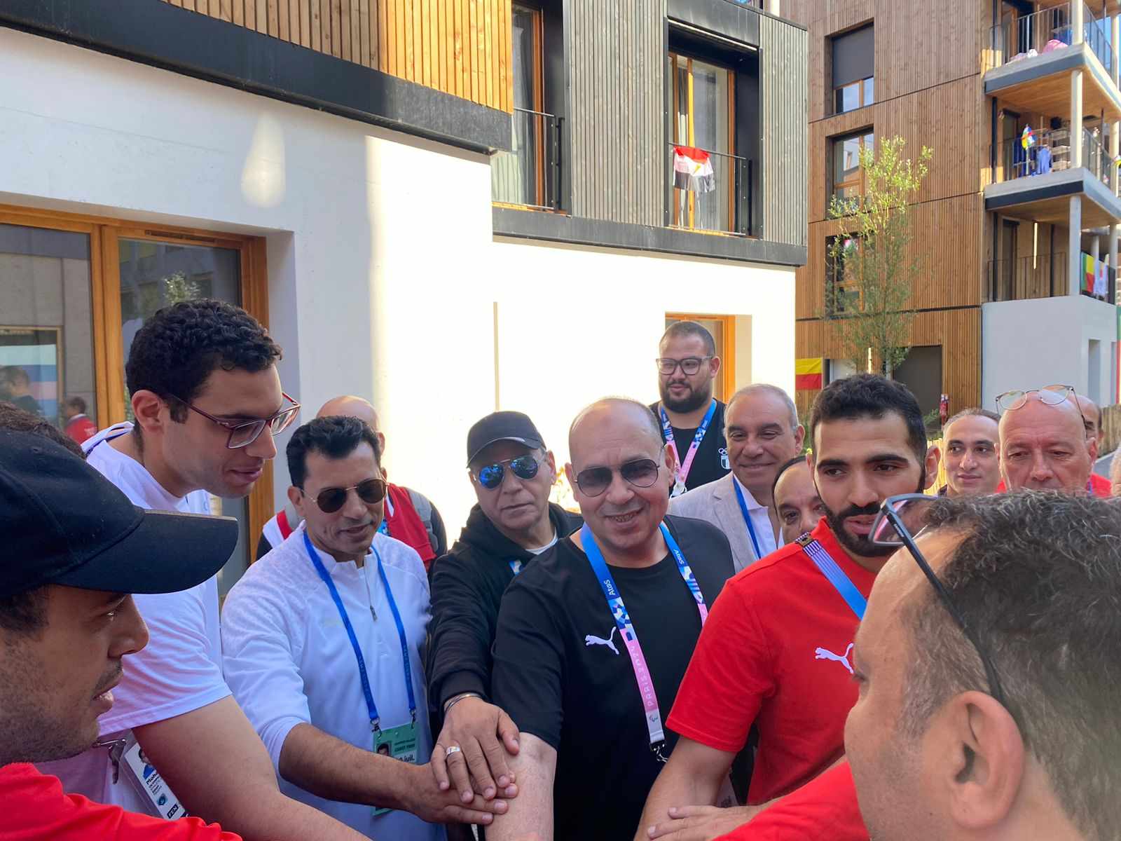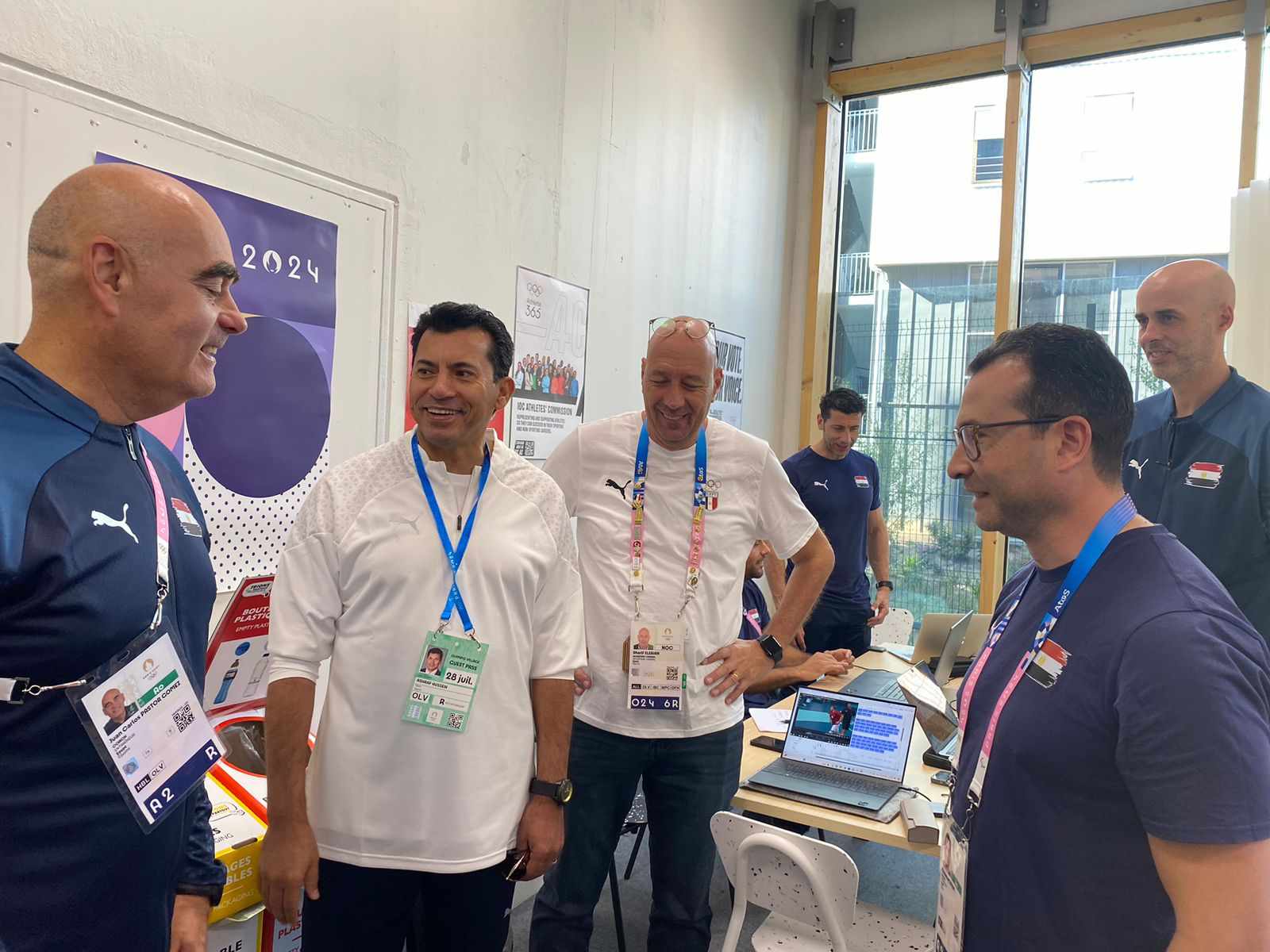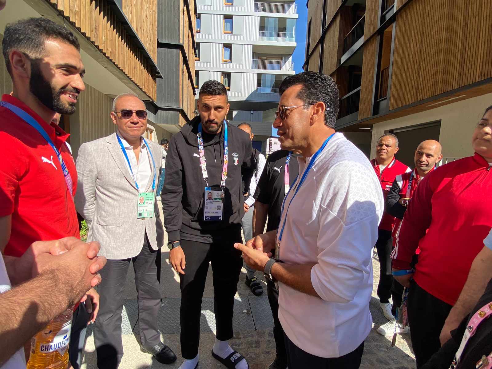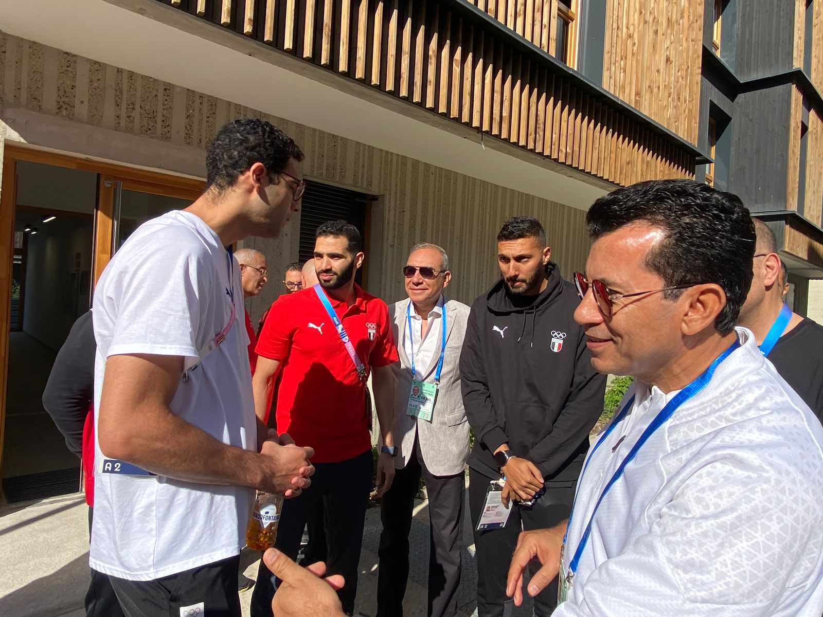 أوليمبياد باريس، اجتمع الدكتور أشرف صبحي وزير الشباب والرياضة، وعلاء يوسف سفير مصر في فرنسا، والمهندس ياسر إدريس رئيس اللجنة الأولمبية، مع لاعبي مصر في أولمبياد باريس 2024، داخل القرية الأولمبية.