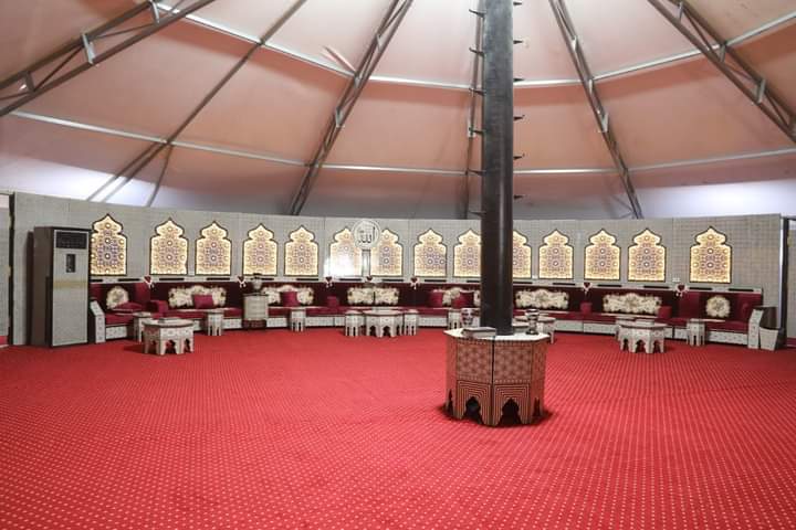 حيثُ تفقّد أعمال تأثيث وفرش الخيمة البدوية، مُوجهًا بتغطية السقف بشكل جمالي، وإجراء تجربة لأجهزة التكييف والتبريد، وتشجير المنطقة المحيطة بالخيمة.