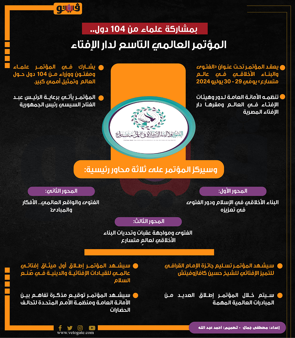 بمشاركة علماء من 104 دول.. المؤتمر العالمي التاسع لدار الإفتاء (إنفو جراف) الإثنين 29/يوليو/2024 - 11:01 ص 7/29/2024 11:01:53 AM المؤتمر العالمي التاسع لدار الإفتاء مصطفى جمال شارك طباعة 18 حجم الخط شارك طباعة المفتي العام للبوسنة والهرسك دار الإفتاء دور وهيئات الافتاء في العالم الرئيس عبد الفتاح السيسي جائزة الإمام القرافي للتميز الإفتائي