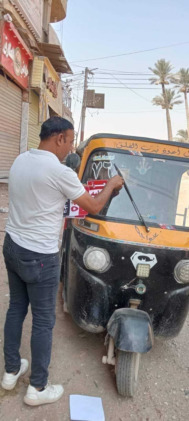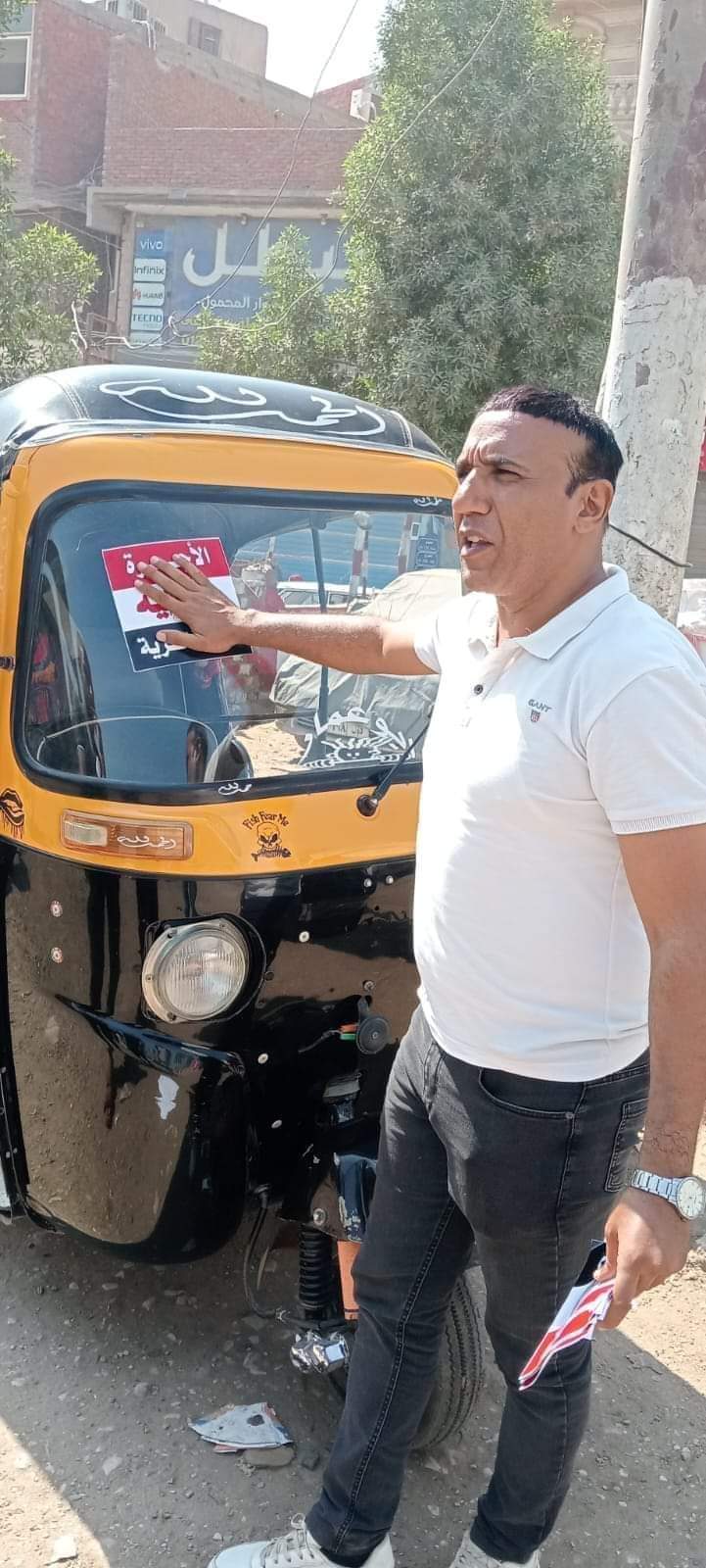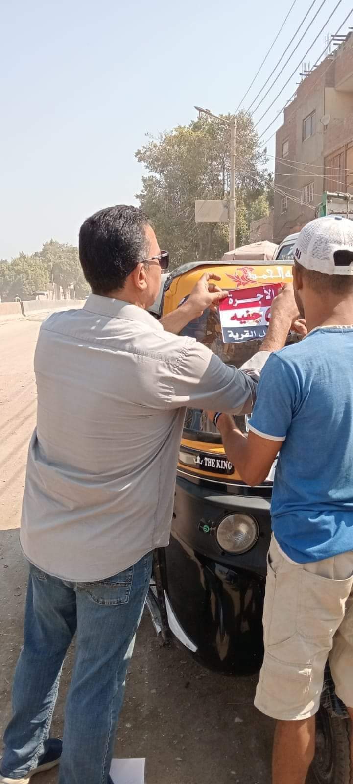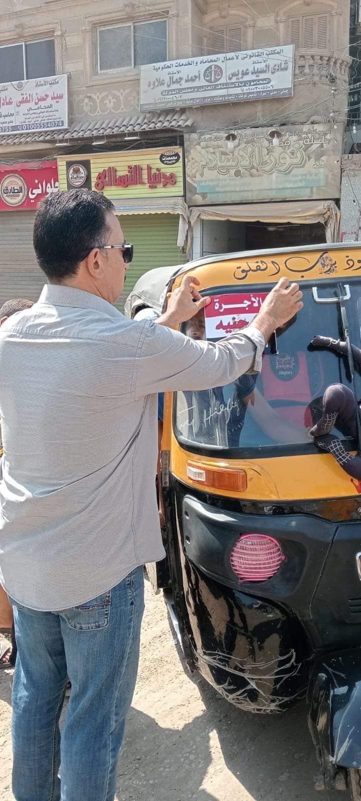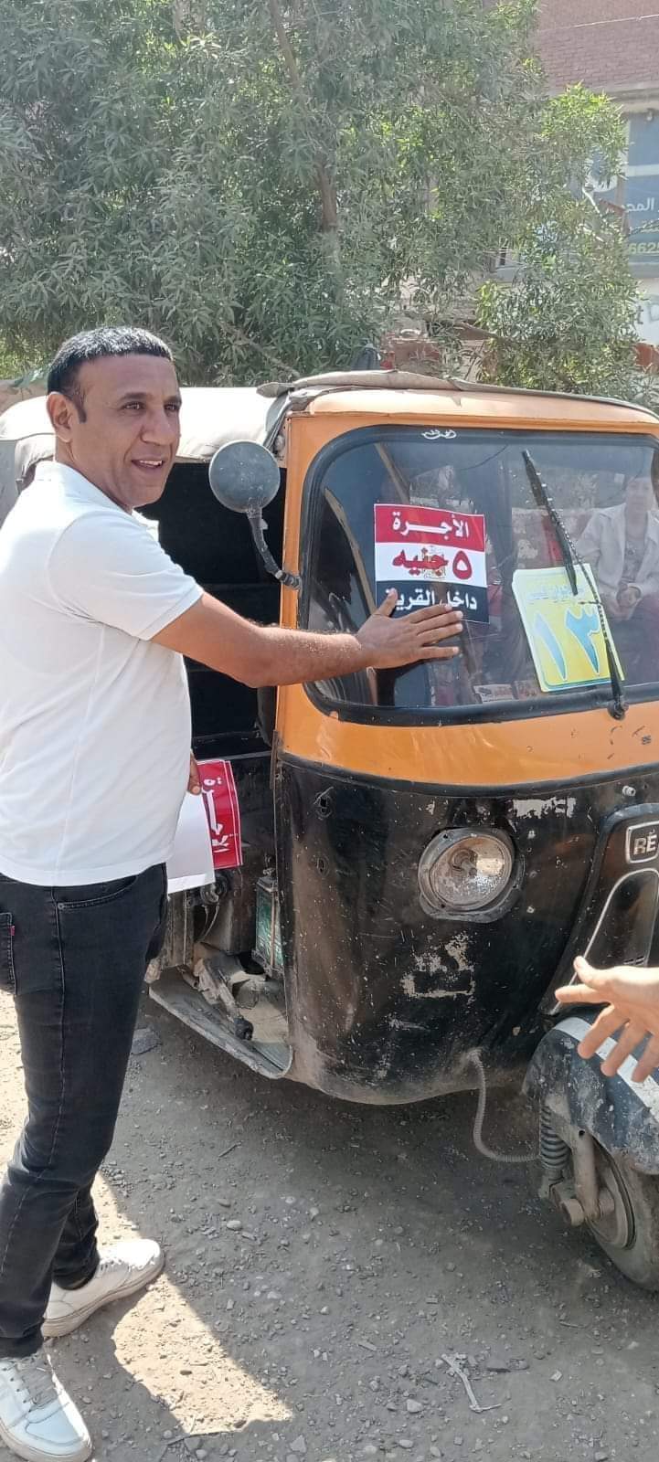 ووجه بلصق بوسترات على مركبات التوك توك تحدد تعريفة الركوب داخل قرى البدرشين بـ "5 جنيهات".