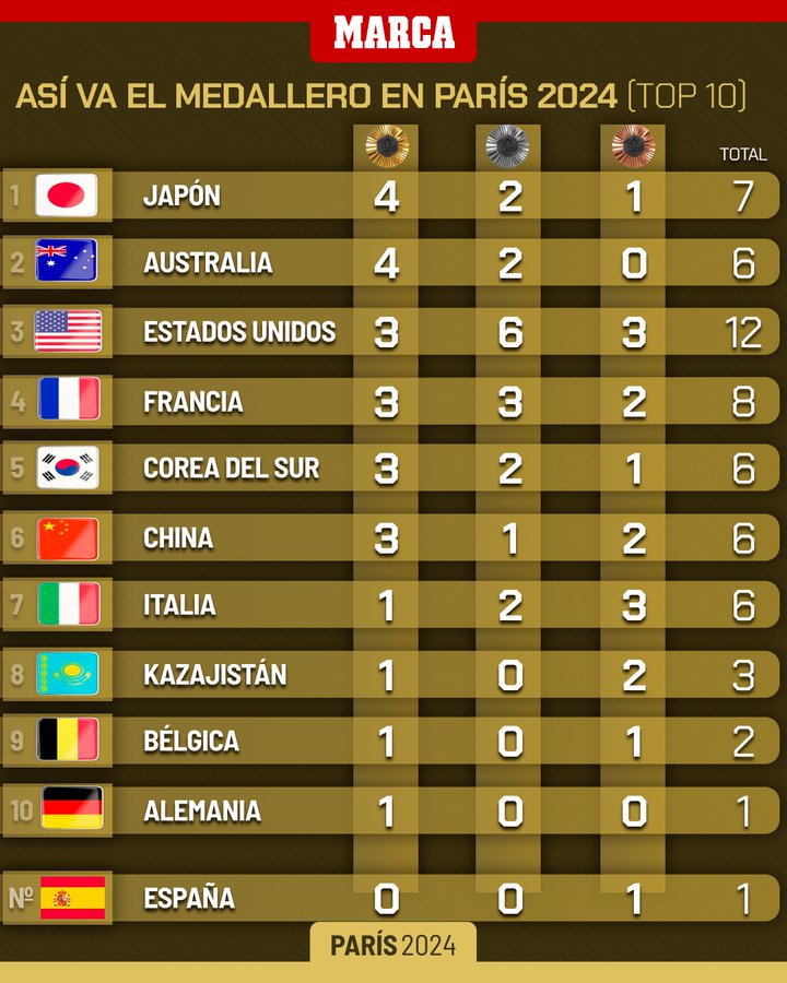 اليابان على القمة، الترتيب العام للميداليات في أولمبياد باريس 2024