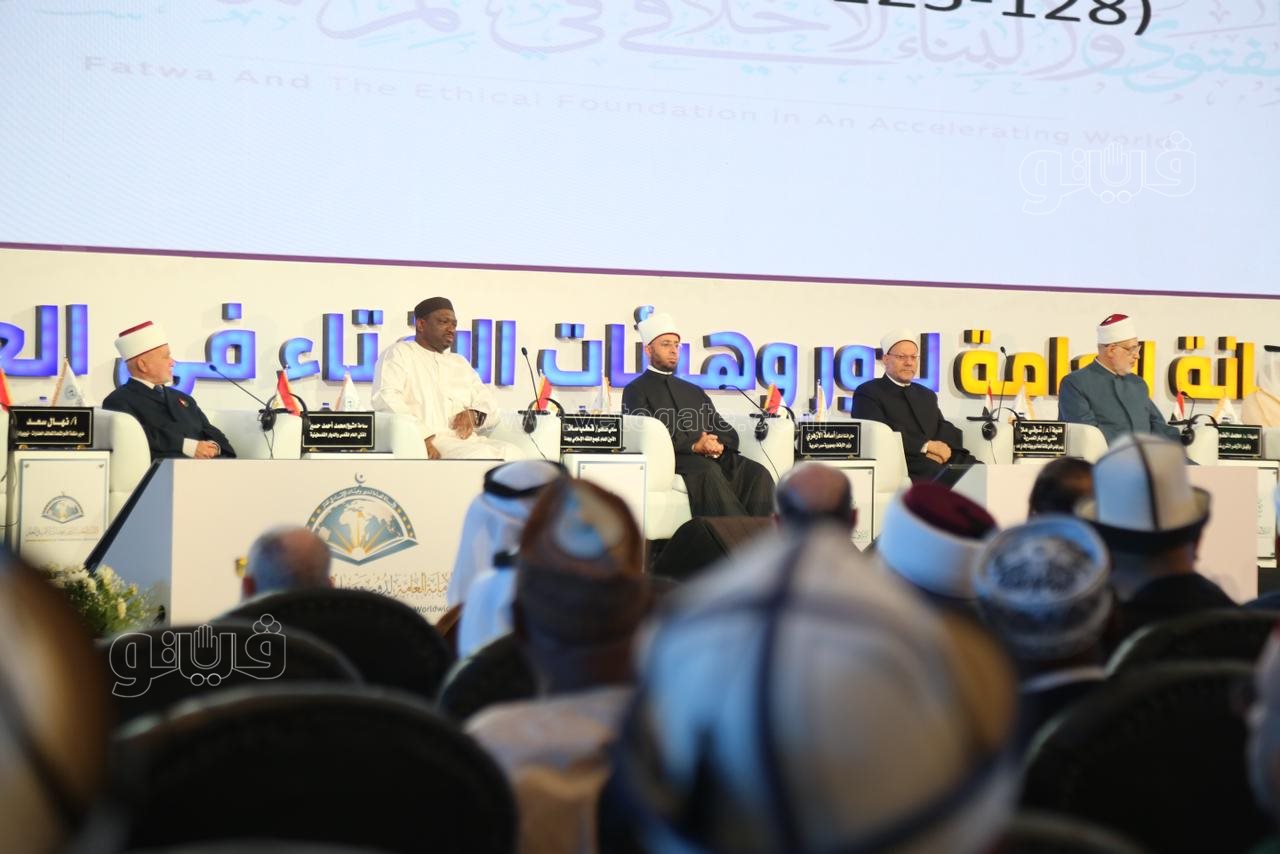 واشار إلى أن المؤتمر ينعقد في الوقت الذي يشهد فيه العالم تطورات مذهلة في الفكر والسلوك، وتغيرات متلاحقةً في المفاهيم والمنطلقات، وتقلبات متصاعدة في المواقف والموازين، وتحديات محيرة في عالم القيم والأفكار والمبادئ، وفوق كل ذلك، فإنَّه يعاني صراعًا متقدًا بين الحق والباطل، وبين النور والظلام، وبين الرحمة والقسوة، وبين العدل والجور، مما أدى إلى نشوب حروب جهنمية وصراعات دموية في أرجائه لا تفتأ تحصد أرواح الأبرياء من النساء والولدان والشيبان، وتقضي على الثمرات والممتلكات، وتطال جهارًا نهارًا القيم والمبادئ.. ولقد أحسنتم صنعًا في اختياركم عنوان هذا المؤتمر إبرازًا لذلك الدور المرتجى للبناء الأخلاقي في كفكفة تلك الأهوال المفجعة، ولملمة تلك الظروف المفزعة من خلال فتاوى صادقة جامعة واعية منبثقة عن تمسك شديد بالمنظومة الأخلاقية، والبناء الأخلاقي.