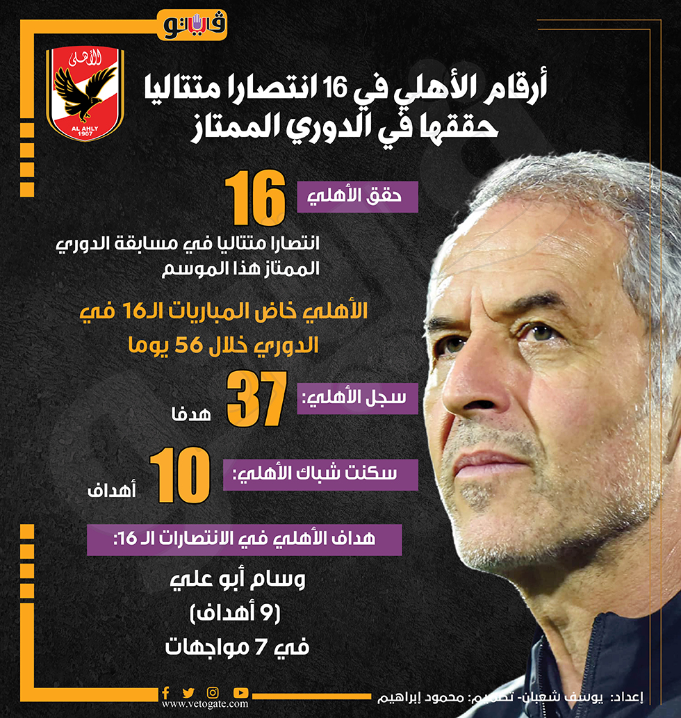 أرقام الأهلي في 16 انتصارا متتاليا حققها في الدوري الممتاز (إنفوجراف) الإثنين 29/يوليو/2024 - 08:18 م 7/29/2024 8:18:49 PM فريق الكرة بالنادي الأهلي، فيتو يوسف شعبان شارك طباعة 18 حجم الخط شارك طباعة الأهلي الدوري الممتاز وسام أبو علي اخبار الأهلي النادي الأهلي