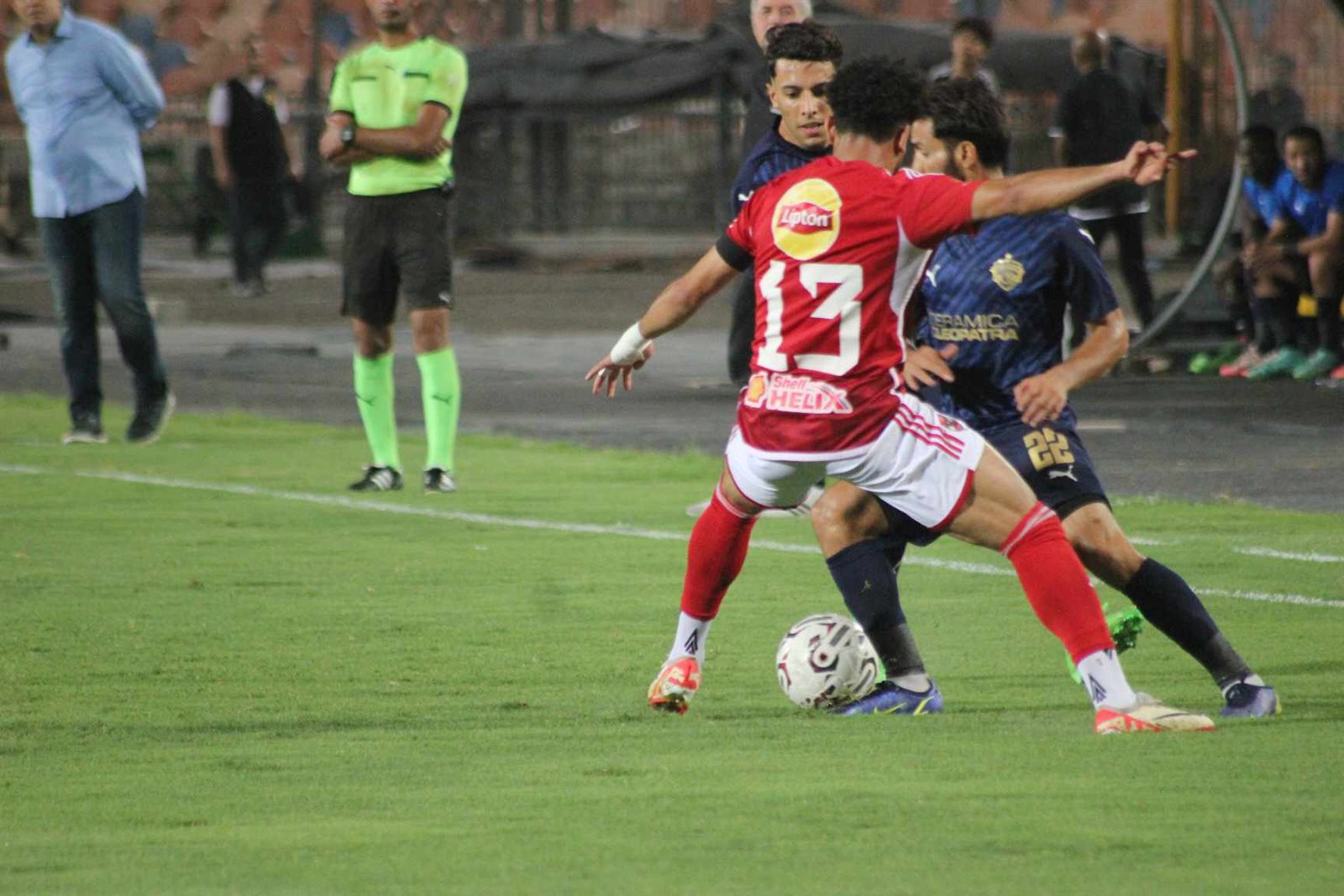 وتشهد الدقيقة 5 تمريرة خاطئة من محمد بسام لترتطم بقدم وسام أبو علي وتمر بجوار القائم الأيسر لمرمى سيراميكا، وكادت أن تكون الهدف الأول للأحمر.
