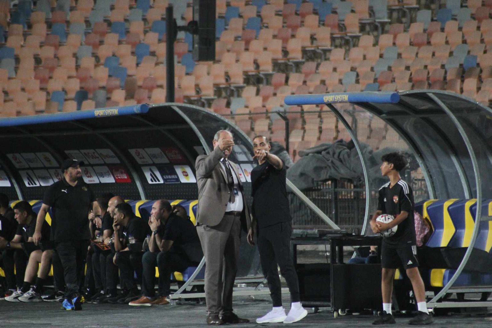 خط الوسط: مروان عطية وإمام عاشور وأكرم توفيق.