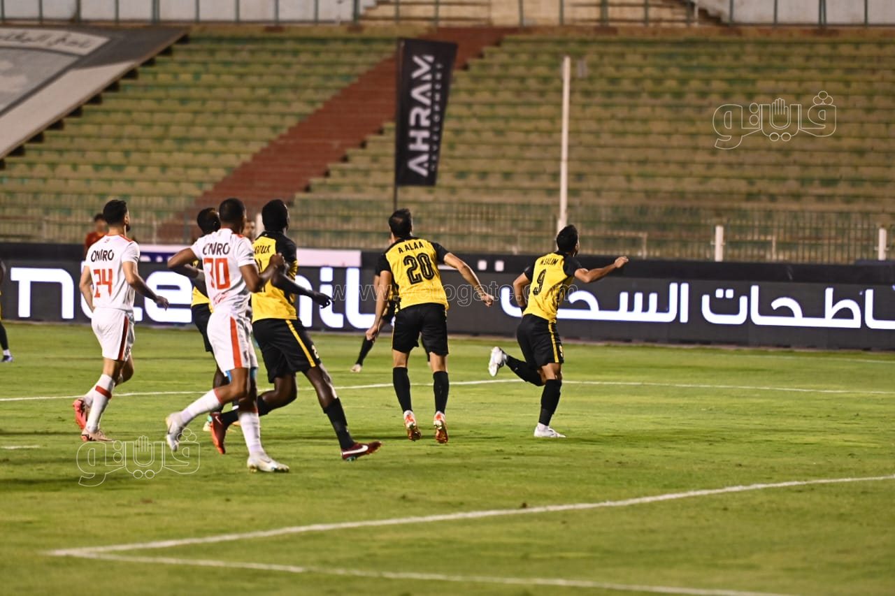 ومحاولات من لاعبي الزمالك لترتيب الصفوف سريعا داخل أرضية الملعب بعد صدمة الهدف الأول لصالح المقاولون العرب.
