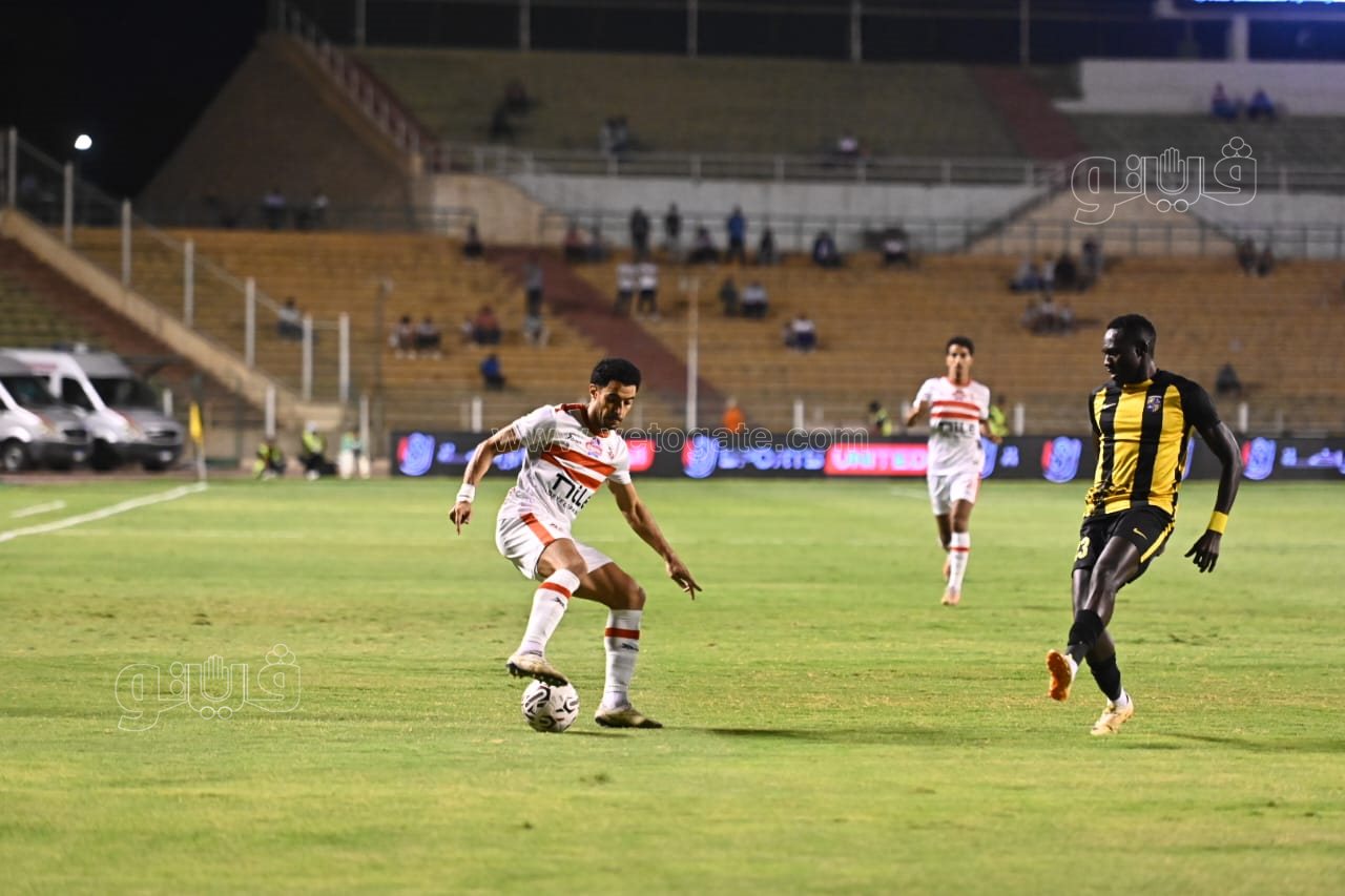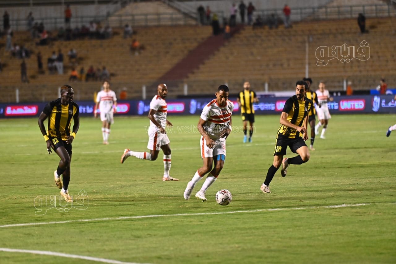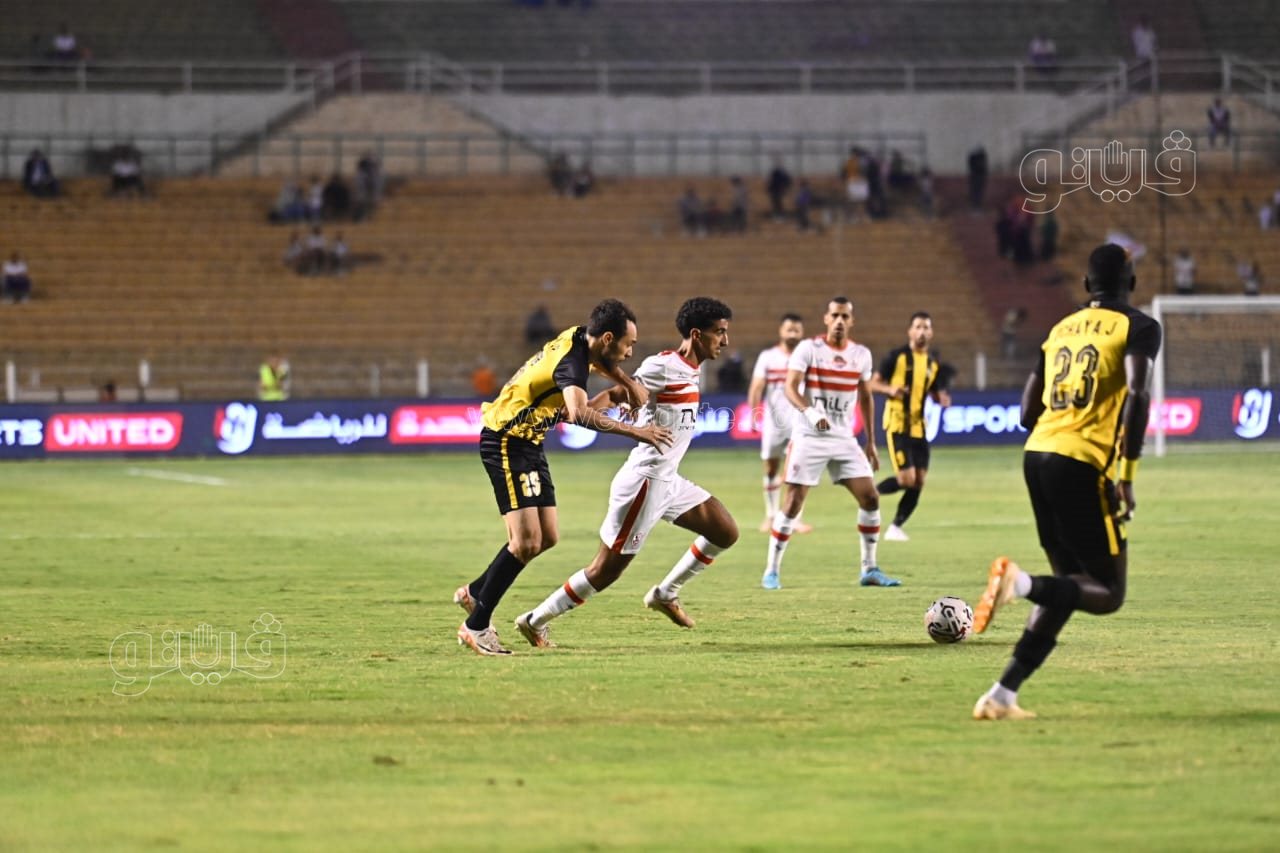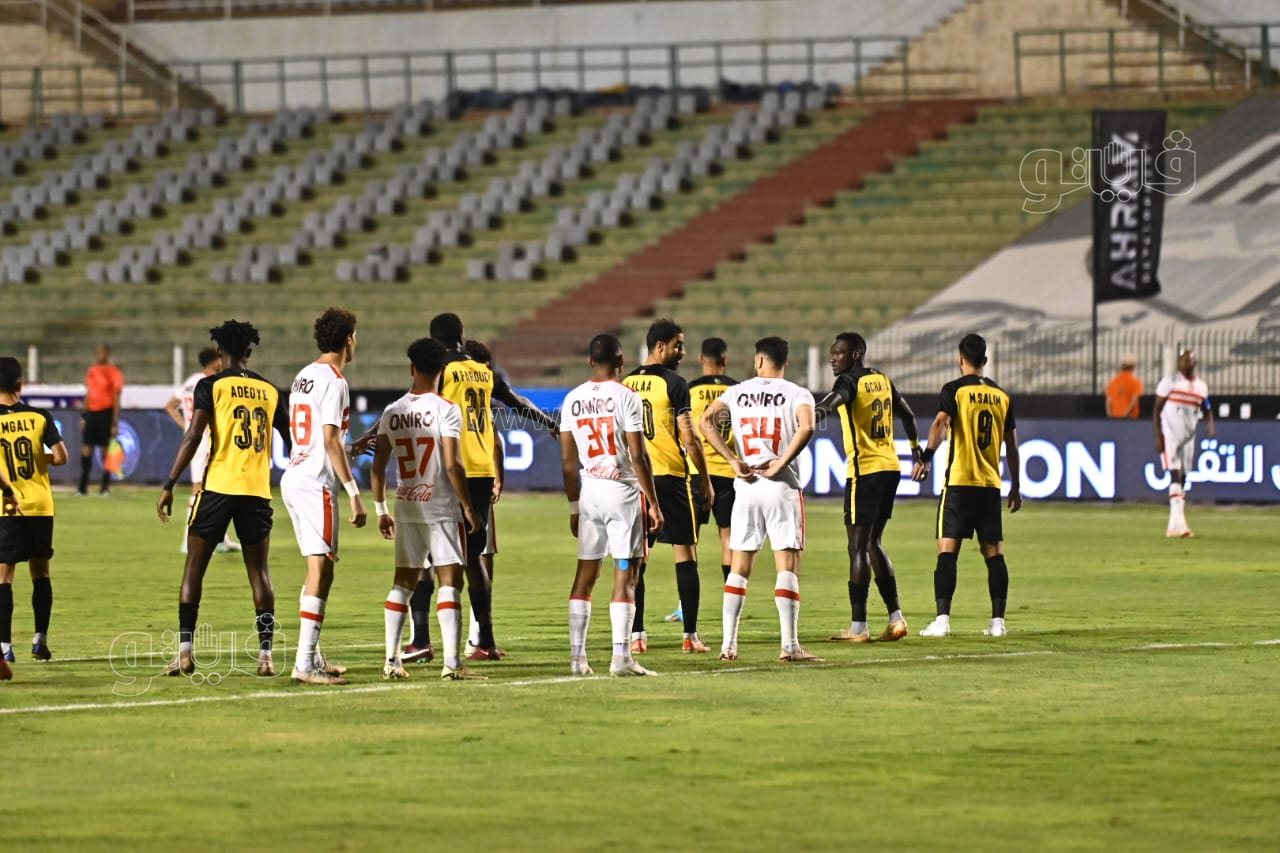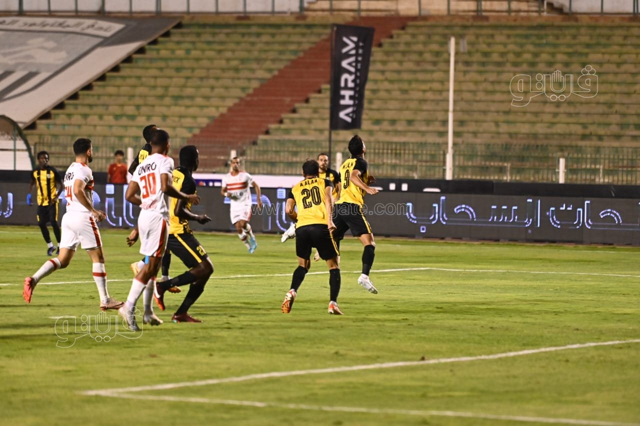 ومحاولات من لاعبي الزمالك لترتيب الصفوف سريعا داخل أرضية الملعب بعد صدمة الهدف الأول لصالح المقاولون العرب.
