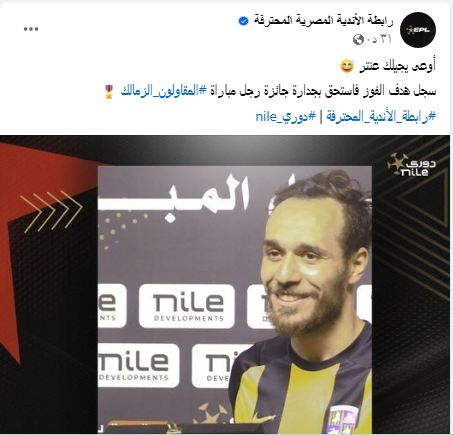 وكتبت رابطة الأندية المحترفة عبر صفحتها الرسمية على فيس بوك: "اوعَ يجي لك عنتر.. سجل هدف الفوز فاستحق بجدارة جائزة رجل مباراة المقاولون والزمالك".