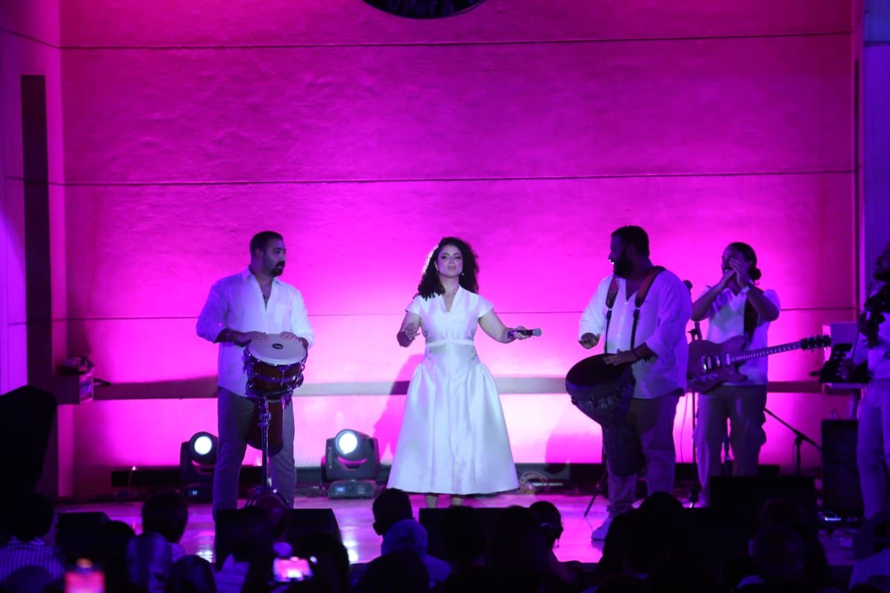 وعلى صدى الأنغام الساحرة والإبداعات الموسيقية التى جمعت بين الشرق والغرب، تألقت الفنانة نسمة محجوب بإطلالة مميزة مستعرضة قدرتها الفائقة على مزج ألوان الموسيقى المختلفة، والتى أبهرت من خلالها جمهورها الكبير الذي حرص على الحضور بكثافة للاستمتاع بفنها الراقى.