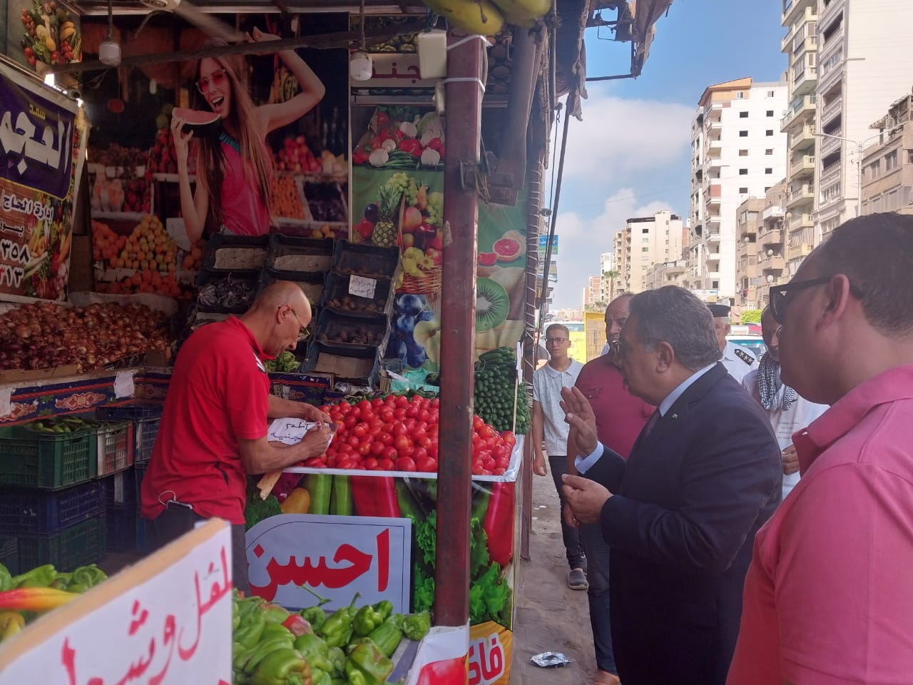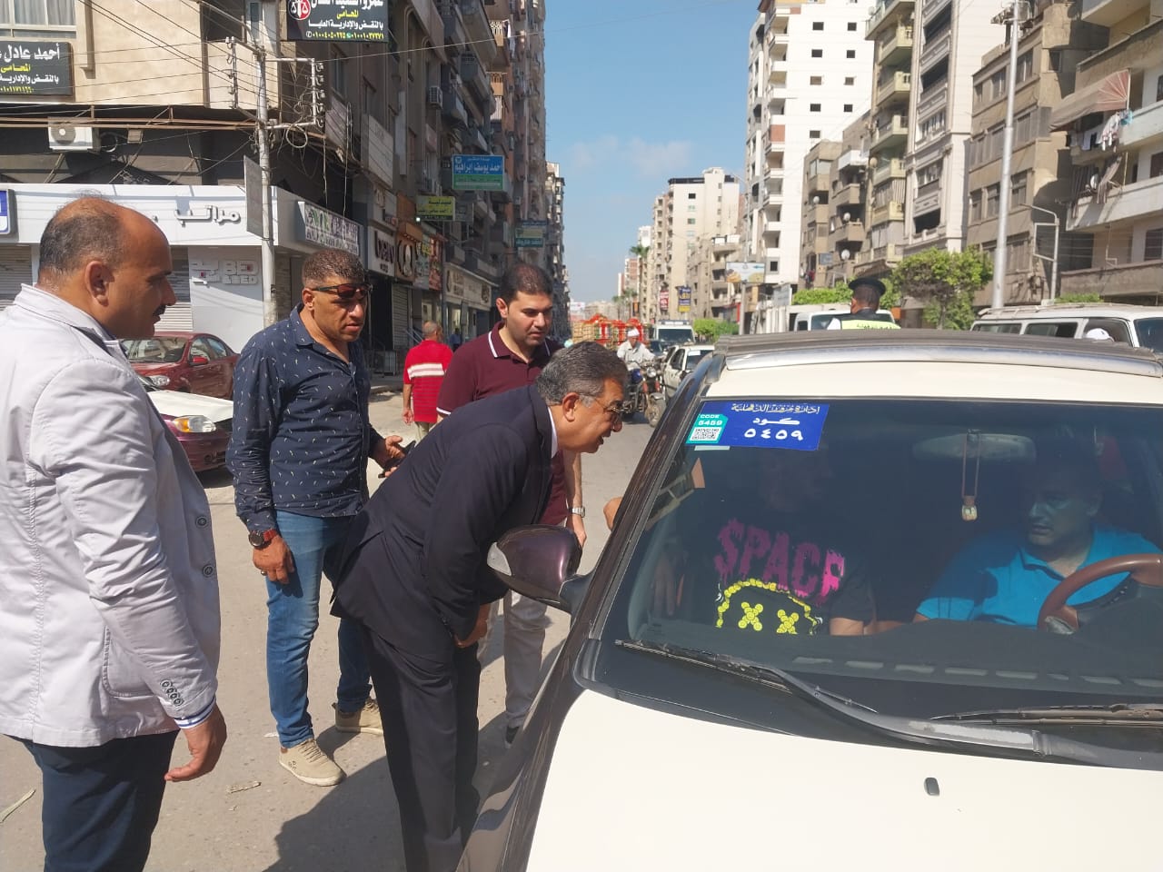 وتفقد شوارع ( بورسعيد - عبدالسلام عارف - الجيش ) لمتابعة حملة النظافة والإشغالات التي انطلقت من شارع بورسعيد، كما تفقد أحد منافذ بيع الخضار والفواكه بشارع عبدالسلام عارف للتأكد من الإعلان عن الأسعار وتوفير السلع بأسعار مخفضة عن السوق، وقام بإيقاف عدد من سيارات التاكسي والسرفيس للتأكد من الالتزام بالتعريفة والبنديرة المقررة، والتقي بعدد من المواطنين واستمع إلى مطالبهم وشكواهم ووجه بسرعة حلها.