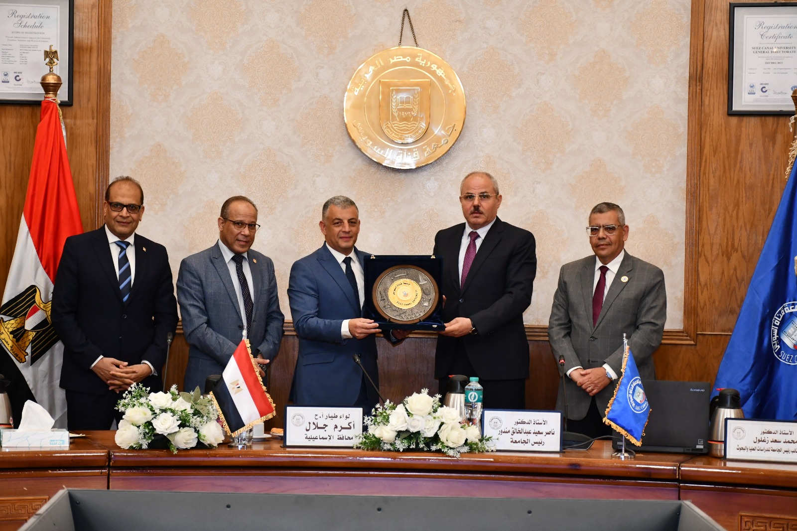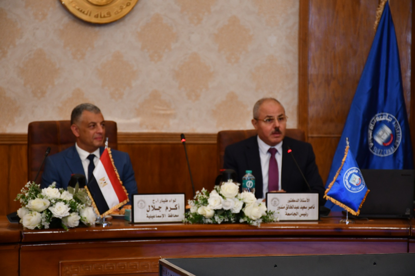 وأكد الدكتور ناصر مندور في كلمته على حرص الجامعة على تعزيز سبل التعاون مع المحافظة، بهدف تقديم خدمات تعليمية وبحثية تخدم المجتمع المحلي وتساهم في تحقيق التنمية المستدامة، لافتًا إلى أن الجامعة بكافة تخصصاتها موجهه لخدمة المجتمع وخاصة إقليم القناة وسيناء.