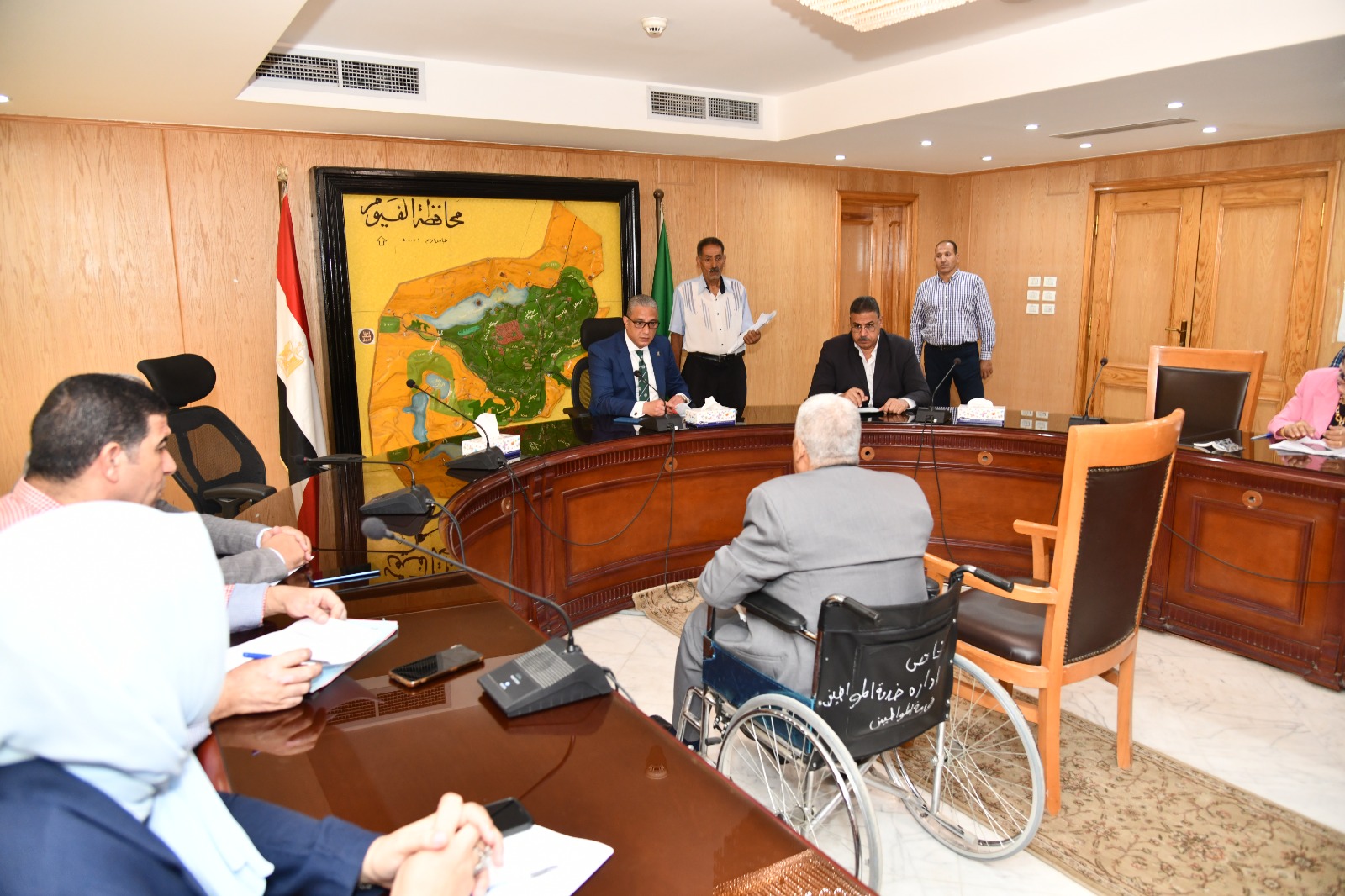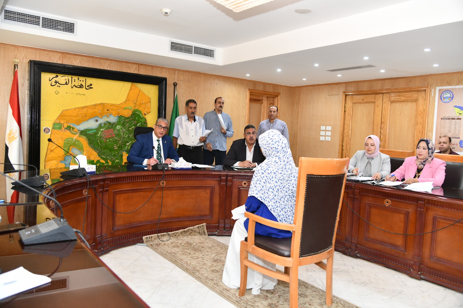 عقد الدكتور أحمد الأنصارى محافظ الفيوم، اللقاء الدوري لخدمة المواطنين، ووجه بضرورة بتوفير معونات مادية للأسر الأولى بالرعاية، ووظائف بالقطاع الخاص للخريجين، وعلاج على نفقة الدولة ونفقة الجمعيات الأهلية لغير القادرين، حضر اللقاء مديرو المديريات الخدمية ورؤساء المدن والمراكز.