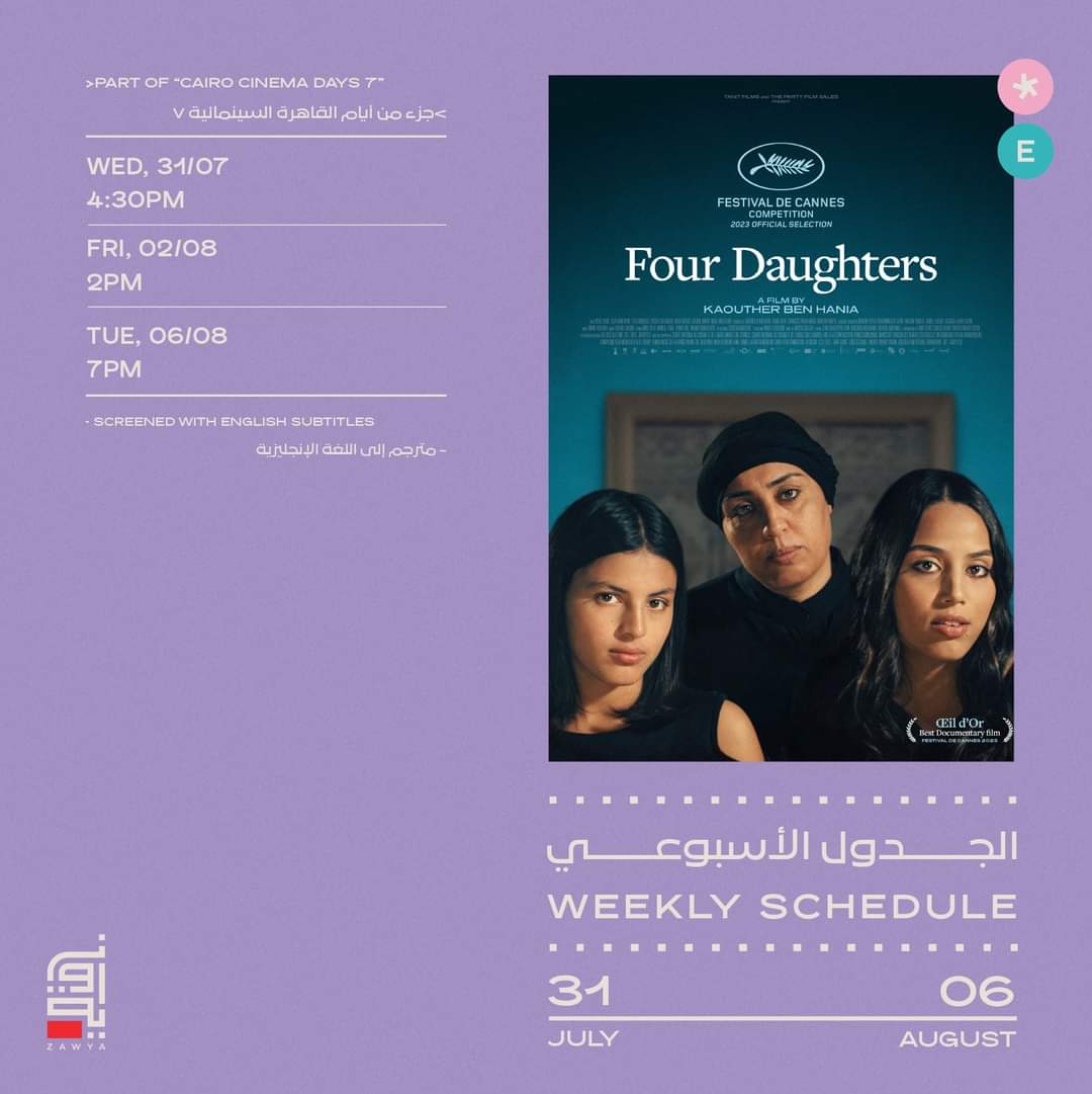 تستعد سينما زاوية لعرض عدة أفلام ضمن عروض نهاية الأسبوع الحالى.