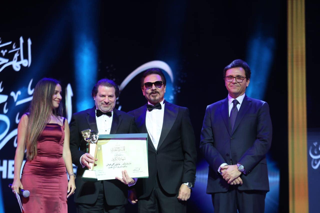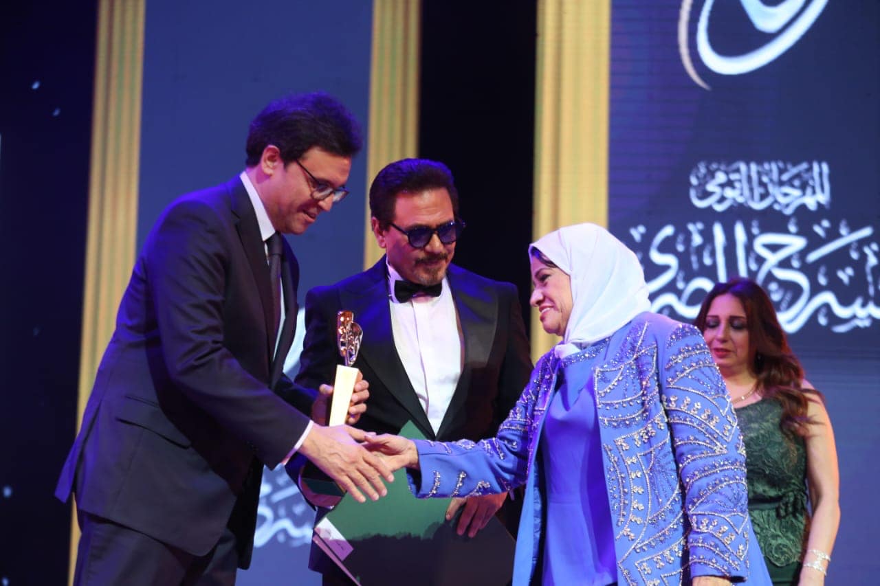 وسلم الدكتور أحمد فؤاد هنو وزير الثقافة والفنان محمد رياض رئيس المهرجان القومي للمسرح المصري، شهادات تقدير ودرع المهرجان للمكرمين.