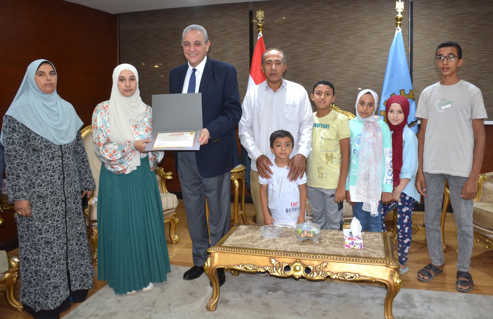 استقبل اللواء أشرف الجندي محافظ الغربية مساء أمس بمكتبه بديوان عام المحافظة الطالبة نفيسة محمد العفيفي وأسرتها والحاصلة على المركز الثاني مكرر على مستوى الجمهورية في الثانوية الأزهرية للقسم العلمي للعام الدراسي ٢٠٢٣ /٢٠٢٤.