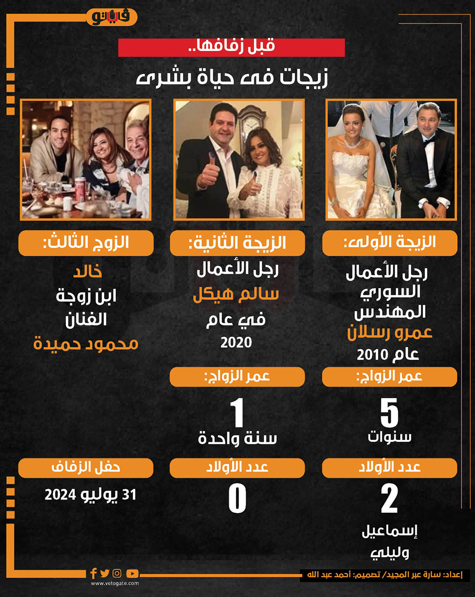 قبل زفافها.. زيجات فى حياة بشرى (إنفوجراف) الأربعاء 31/يوليو/2024 - 08:01 م 7/31/2024 8:01:01 PM بشرى.فيتو سارة عبد المجيد شارك طباعة 18 حجم الخط شارك طباعة الفنان محمود حميدة رجل الاعمال سالم هيكل محمود حميدة زيجات بشرى
