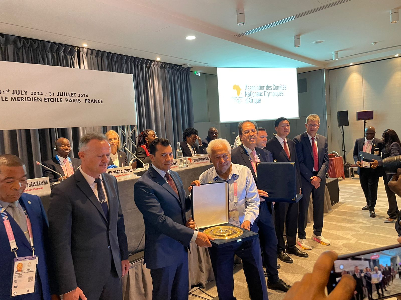 كرم اتحاد اللجان الأولمبية الأفريقية (انوكا)، الدكتور أشرف صبحي وزير الشباب والرياضة خلال اجتماع الجمعية العمومية المقام اليوم الأربعاء الموافق 31 يوليو.