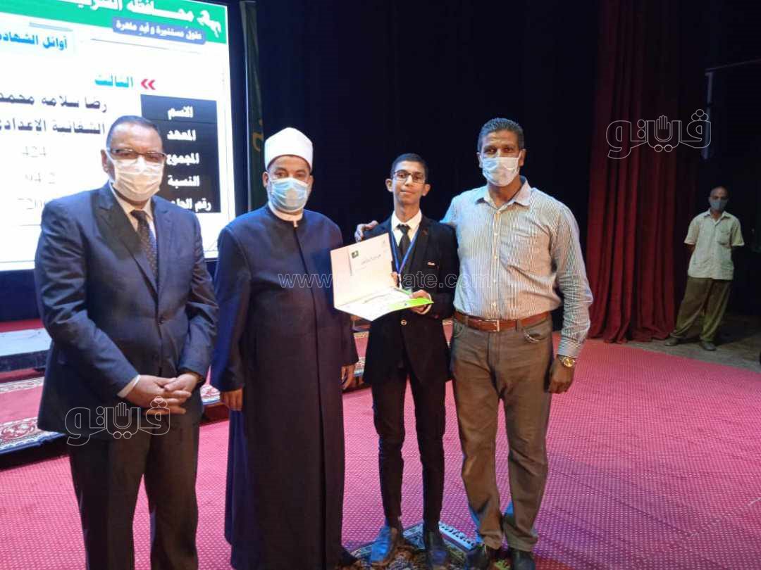 المركز الأول: هبة محسن عبد الرازق خرشد، من معهد بساط طلخا بالدقهلية، بمجموع 619 بنسبة (98.25%).