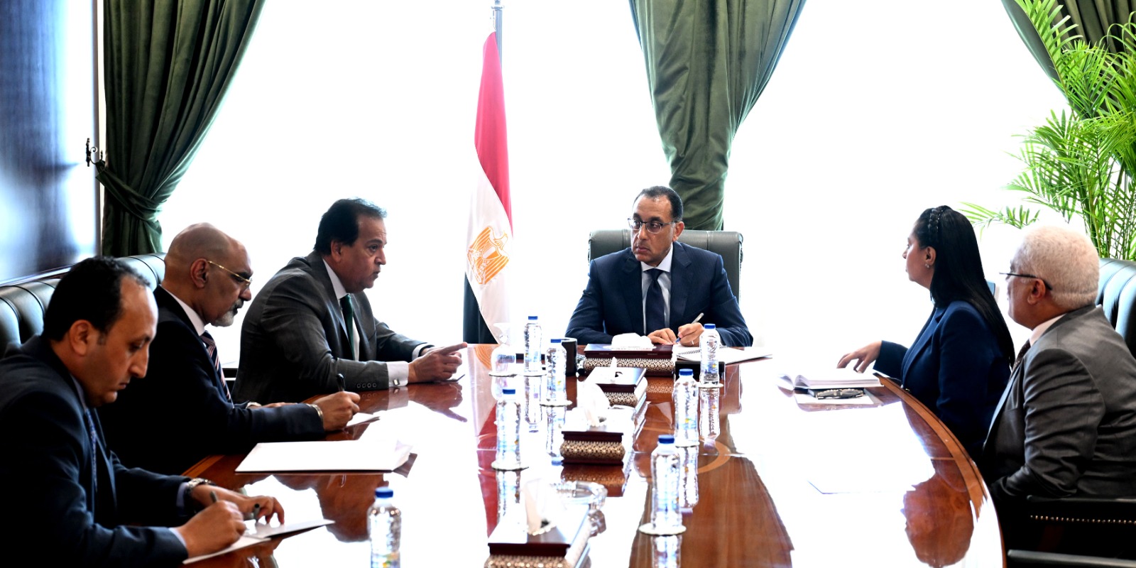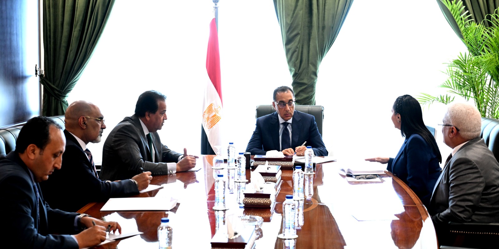 عقد الدكتور مصطفى مدبولي، رئيس مجلس الوزراء، اليوم بمقر الحكومة بمدينة العلمين الجديدة، اجتماعًا لمتابعة تنفيذ توجيهات الرئيس عبدالفتاح السيسي، رئيس الجمهورية، بشأن ضم العاملين في مجال المقاولات والتشييد والبناء وأسر "تكافل وكرامة" تحت مظلة التأمين الصحي، وذلك بحضور الدكتور خالد عبد الغفار، نائب رئيس مجلس الوزراء للتنمية البشرية، وزير الصحة والسكان، والدكتورة مايا مرسي، وزيرة التضامن الاجتماعي، والدكتور محمد ضاحي، رئيس الهيئة العامة للتأمين الصحي، واللواء جمال عوض رئيس الهيئة القومية للتأمين الاجتماعي.