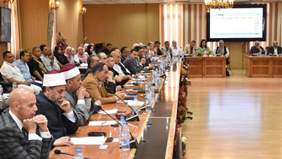 شهد الإجتماع إستعراض إنجازات مديريات وهيئات (التربية والتعليم - الصحة - الكهرباء -التضامن الإجتماعي - الطرق والنقل - التموين - الإسكان - الطب البيطري - التنظيم والادارة - الشباب والرياضة - الأوقاف - الزراعة – العمل - الضرائب العقارية - المالية - الأوقاف - المساحة - شركة مياه الشرب والصرف الصحى - الهيئة القومية لمياه الشرب والصرف الصحى -