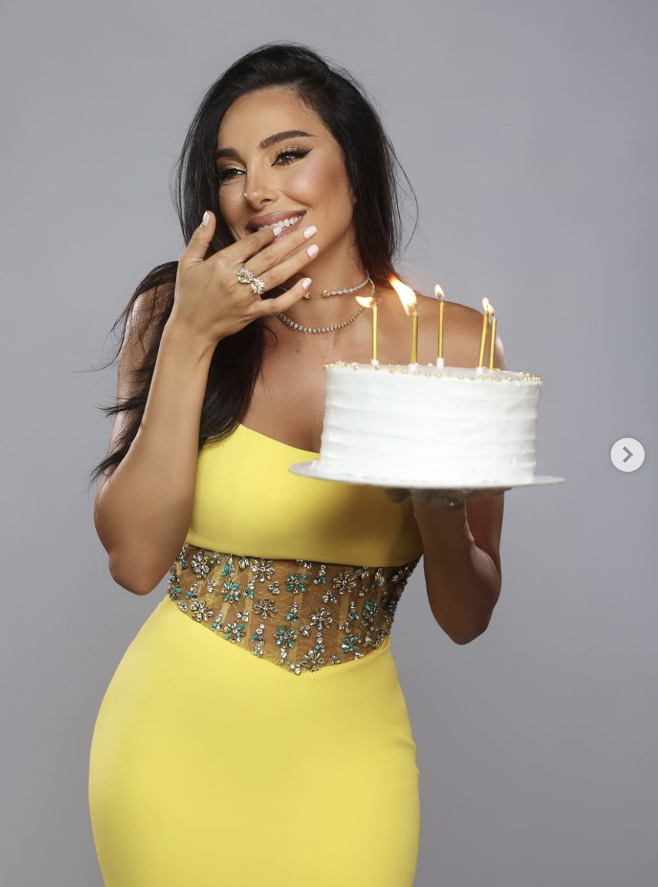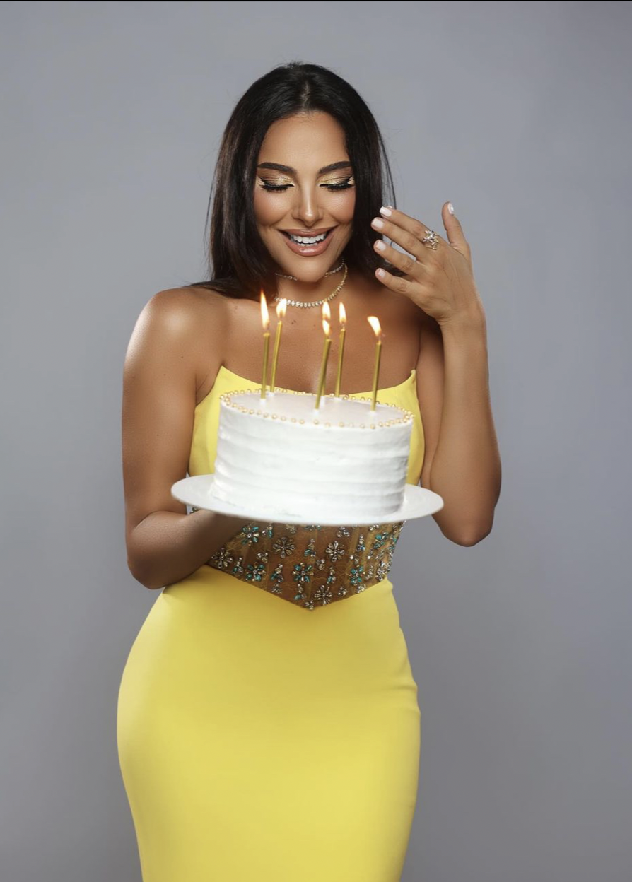 حيث نشرت ساشا عبر حسابها على موقع تبادل الصور إنستجرام صورًا لها وهي تحمل كعكة عيد ميلاد وهي ترتدي فستانًا أصفر أنيقًا.