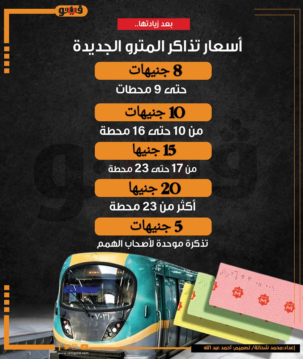 بعد زيادتها.. أسعار تذاكر المترو الجديدة (إنفوجراف) الأربعاء 31/يوليو/2024 - 11:18 م 7/31/2024 11:18:41 PM أسعار تذاكر المترو الجديدة محمدشحاته شارك طباعة 18 حجم الخط شارك طباعة