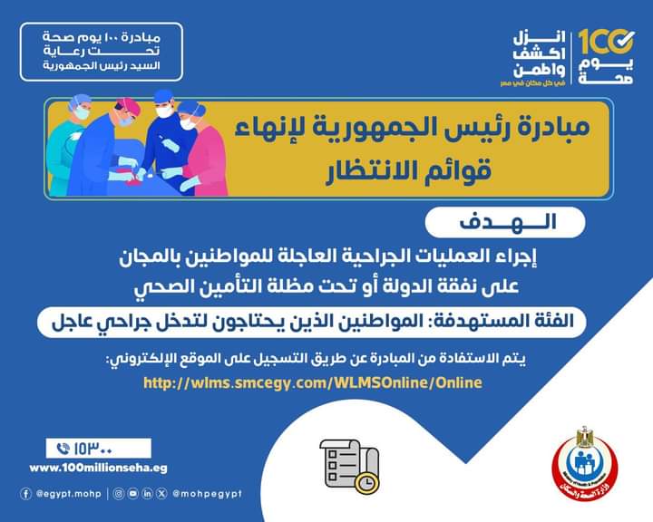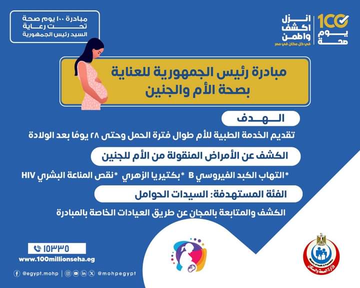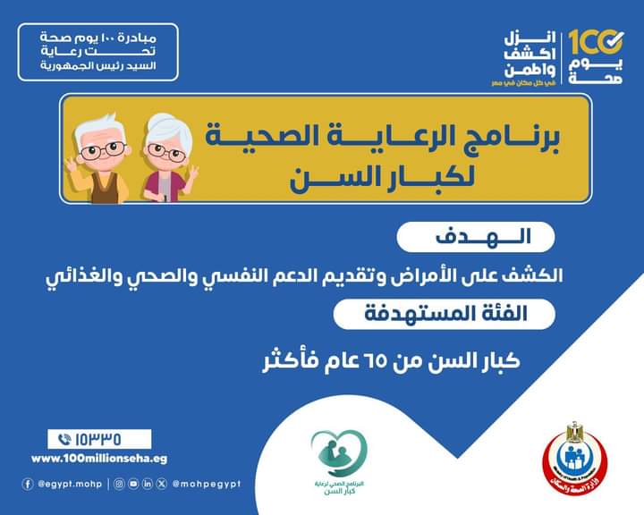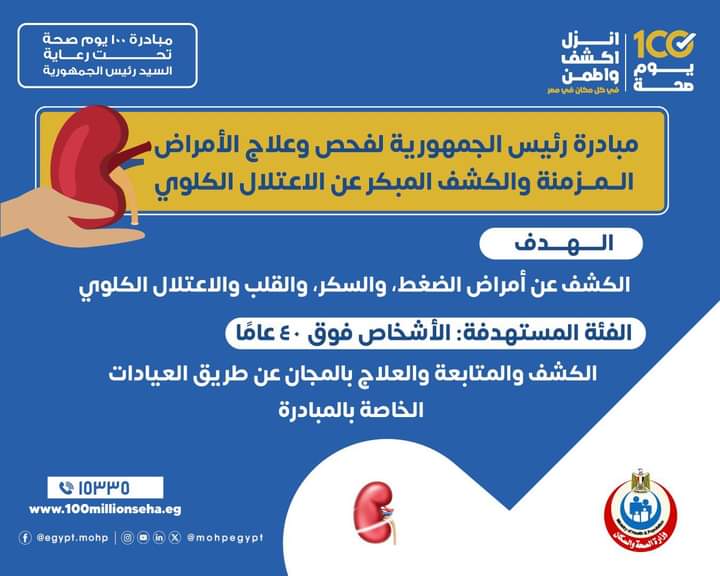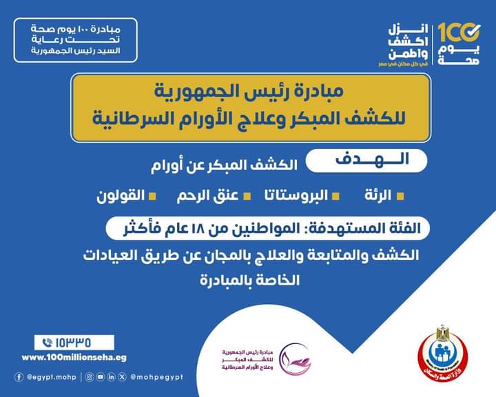عيادات مبادرة ١٠٠ يوم صحة يوميا من ٩ صباحًا لـ ٩ مساءً